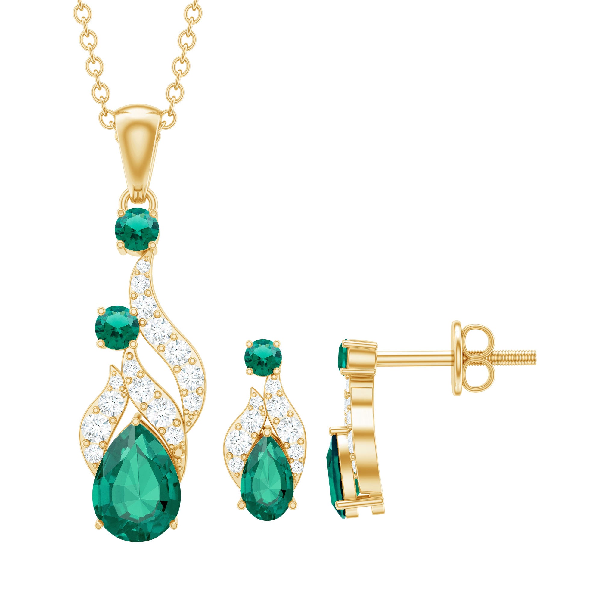 Lab Created Emerald and Diamond Designer Jewelry Set