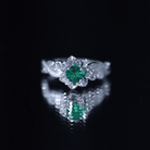 Lab Created Emerald and Diamond Flower Engagement Ring in Silver