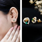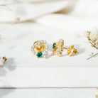 Add a pop of color and meaning to your jewelry collection with these Emerald Heart Earrings, a timeless symbol of growth and love. Crafted in 14K yellow gold plated silver, these Heart Stud Earrings feature a vibrant 3 MM heart shaped lab created emerald at the center, set securely in prong setting. Enhancing the emerald is a graceful open heart frame that is beautifully accented with sparkling round lab grown diamonds. The open heart design adds a romantic touch, making these Emerald and Diamond Earrings ideal for expressing love, friendship, or personal milestones. Whether you are wearing them to a brunch, a birthday dinner, or even as part of a bridal look, they blend seamlessly with both casual and dressy outfits. Designed for everyday wear, these Emerald Stud Earrings are finished with a secure screw-back closure that ensures they stay comfortably in place throughout the day. The lab-created emerald is not only beautiful but also ethical and sustainable, making this pair a conscious choice for modern jewelry lovers. These Heart Shaped Earrings come with a certificate of authenticity and are carefully packed in a premium jewelry box, ready to be gifted or treasured for yourself.