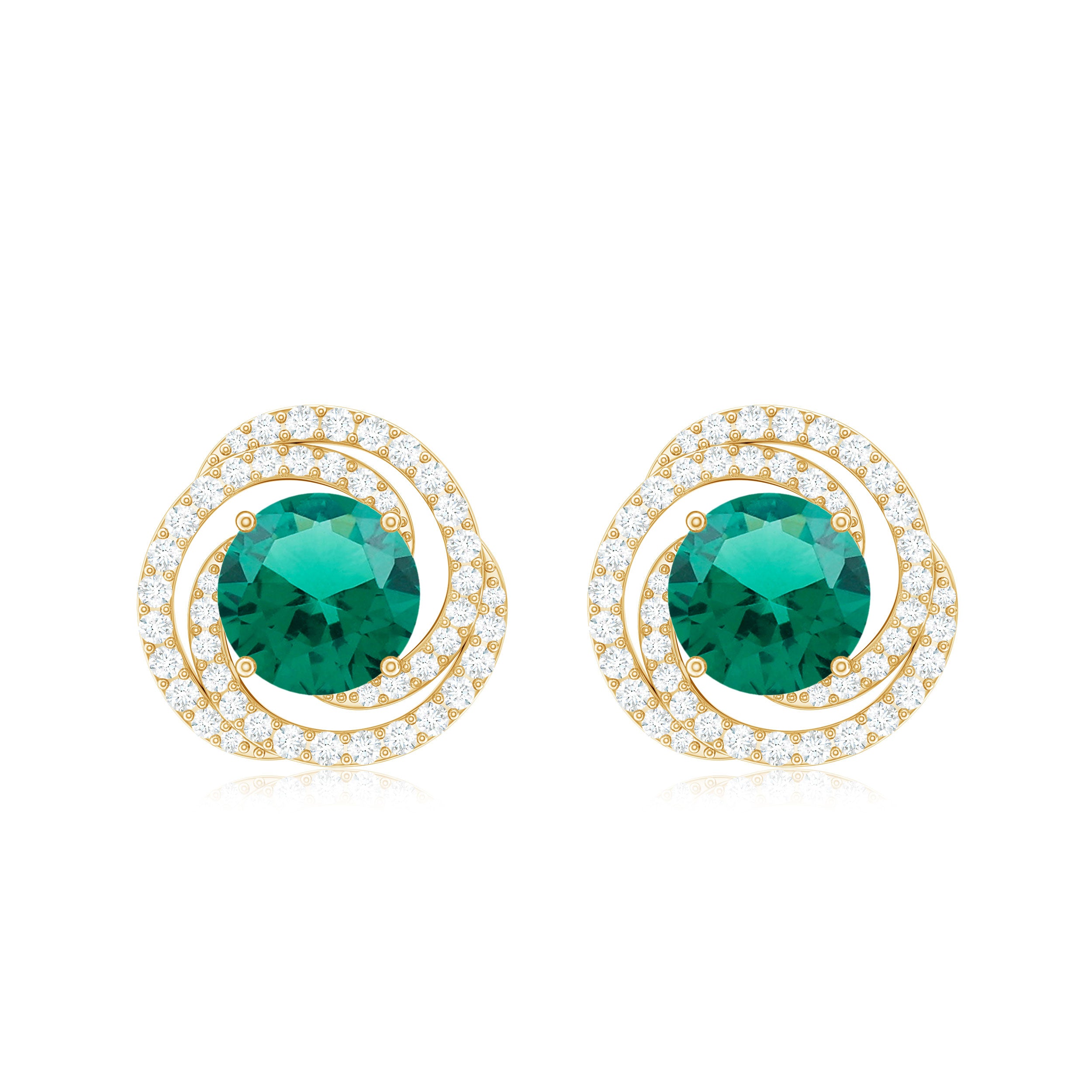 Lab Created Emerald and Diamond Spiral Stud Earrings