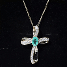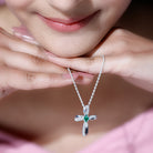 This Emerald Infinity Cross Pendant Necklace beautifully symbolizes your infinite love, commitment, and spirituality. Achieve a versatile style with this lovely and distinctive Cross Necklace. Display your enduring faith with this piece, which showcases a 4X6 MM Oval Shape Lab Grown Emerald at its center, adorned with Moissanite stones across the Cross. Made from 925 Sterling Silver and plated with 14K White Gold, this Religious Necklace combines faith and fashion effortlessly. It hangs from an adjustable Cable Chain, making it a perfect accessory. This Emerald and Moissanite Necklace is specially designed for your Christmas festivities. You can gift this pendant to your loved one as you celebrate your faith together. Your Christian Cross Necklace will arrive in a velvet pouch, complete with an authentication certificate.