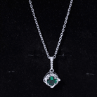 Lab Created Emerald and Moissanite Halo Necklace with Silver Chain