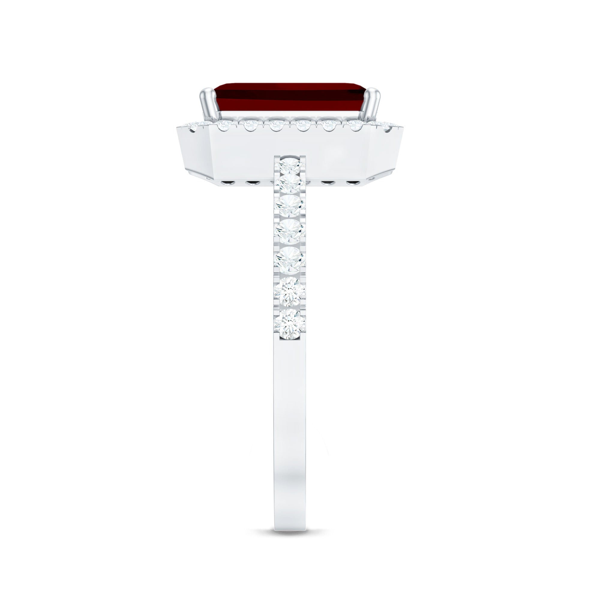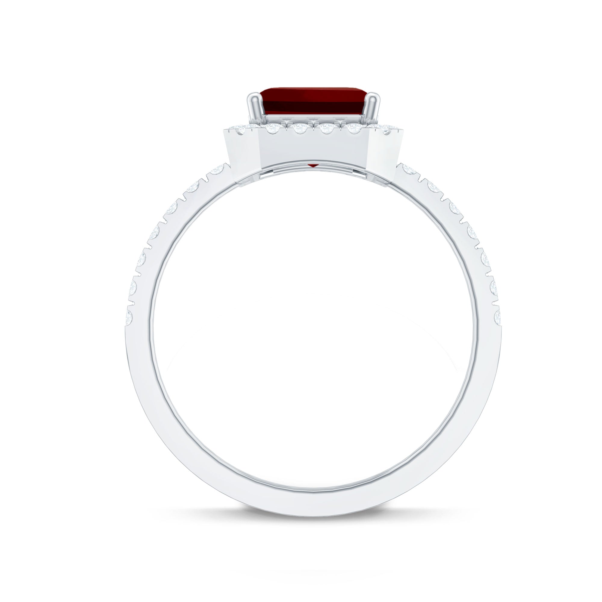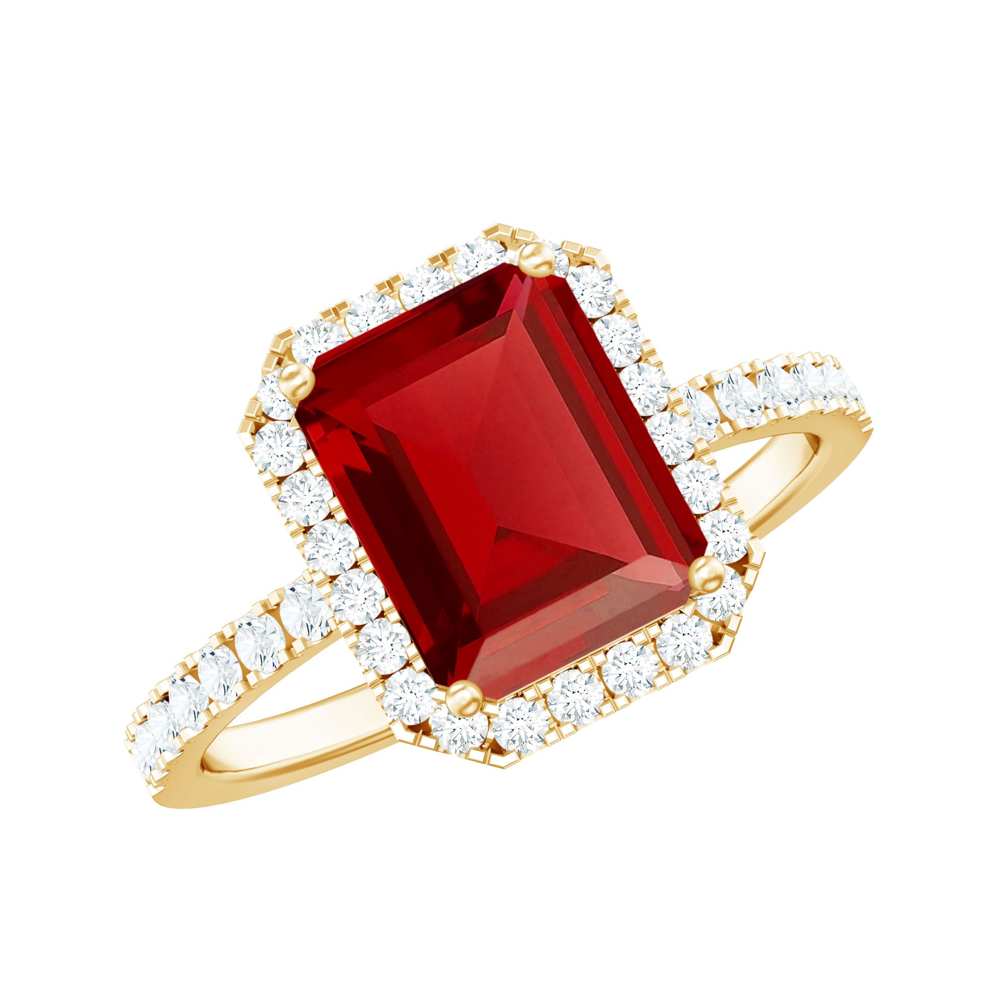 Lab Created Emerald Cut Ruby Engagement Ring with Diamond Halo