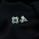 Lab Created Emerald Flower Stud Earrings with Screw Backs