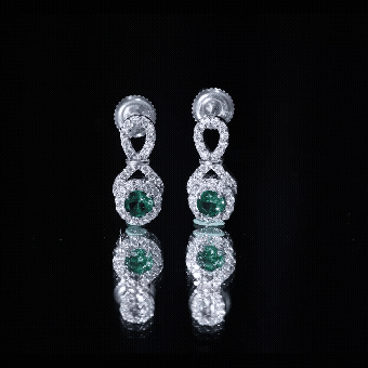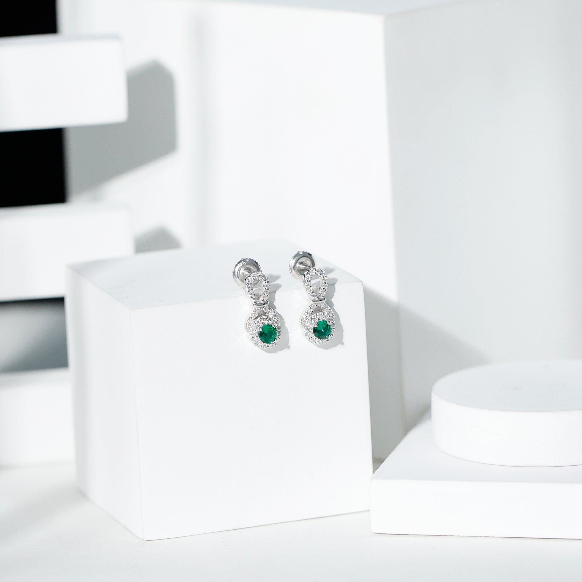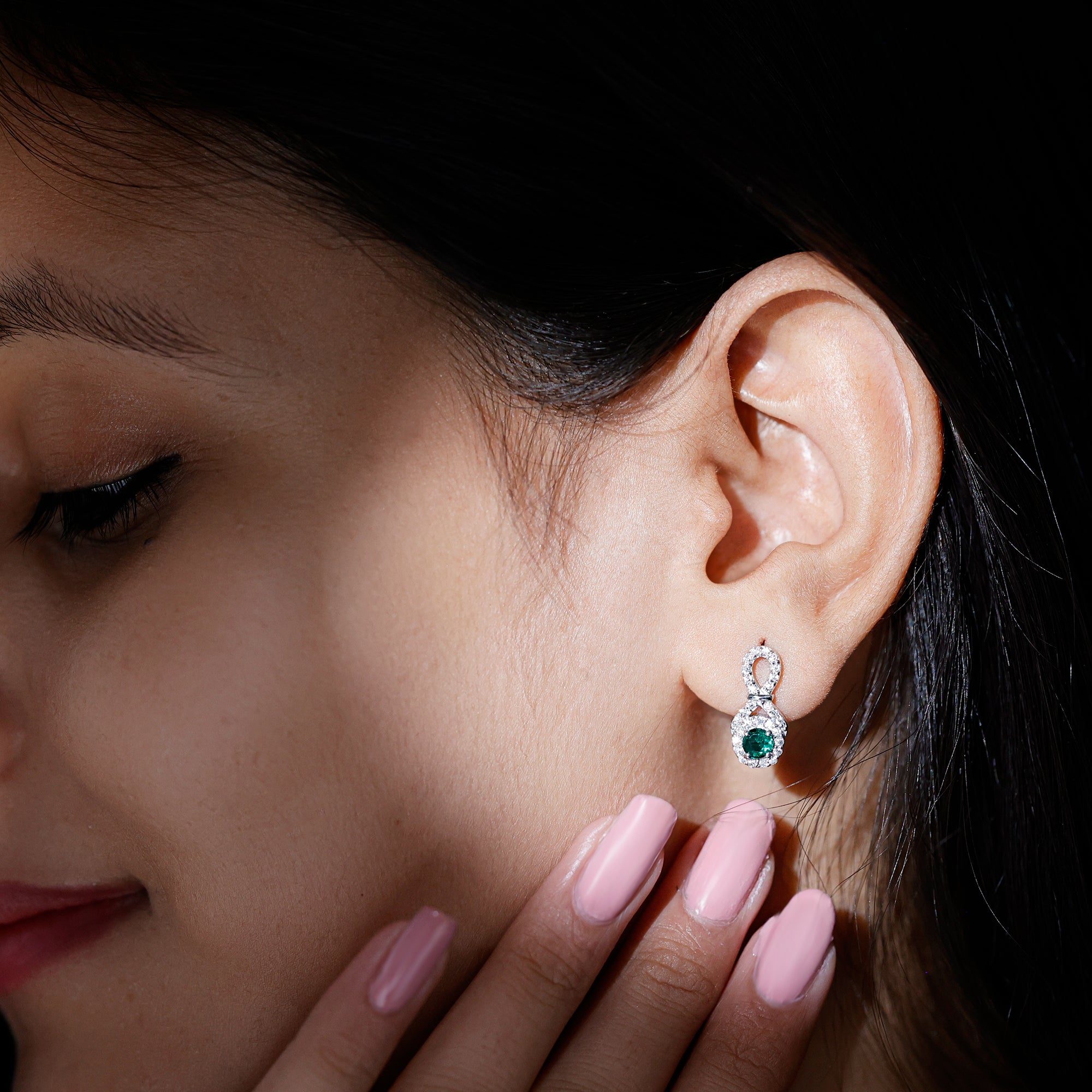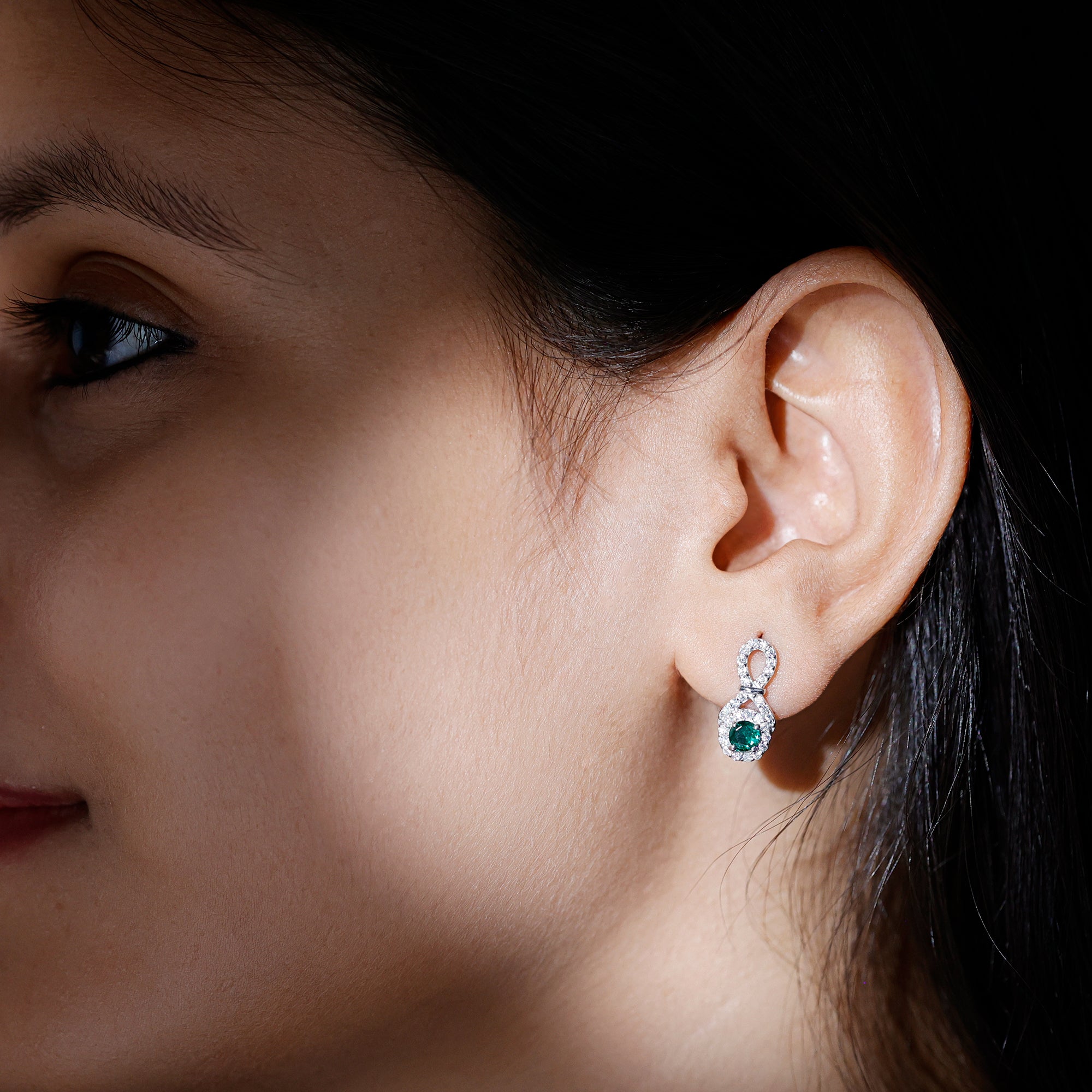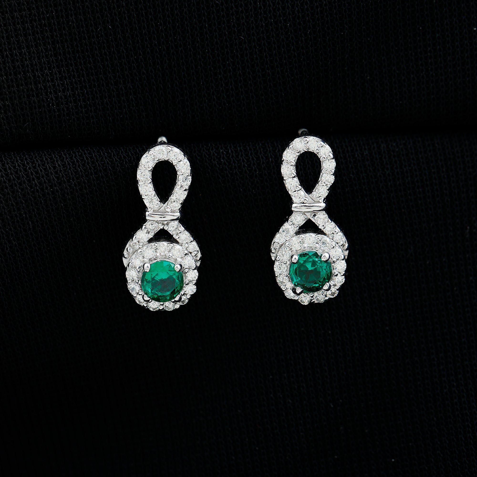 Define eternal love with these Infinity Stud Earrings, which feature 4 MM round cut lab-created emeralds set in prong setting and encircled by a moissanite halo. The Designer Earrings are further embellished with delicate moissanite stones, enhancing the infinity symbol with their brilliance. These Minimalist Earrings radiate with AAAA quality lab-made emeralds and D color VS1 clarity moissanite stones. The secure screw back closure of these studs embraces the earlobe, ensuring they stay in place throughout the day. They are an ideal choice to complement any outfit, whether casual or formal. Add these Lab Grown Emerald Earrings to your jewelry collection, reflecting sophistication and luxury. Handcrafted from 925 sterling silver with white gold plating, these Halo Earrings can be given as a symbol of everlasting love to your special someone. These Emerald Stud Earrings are perfect for making a bold statement in your jewelry collection. They will arrive in premium packaging along with a certificate of authenticity.