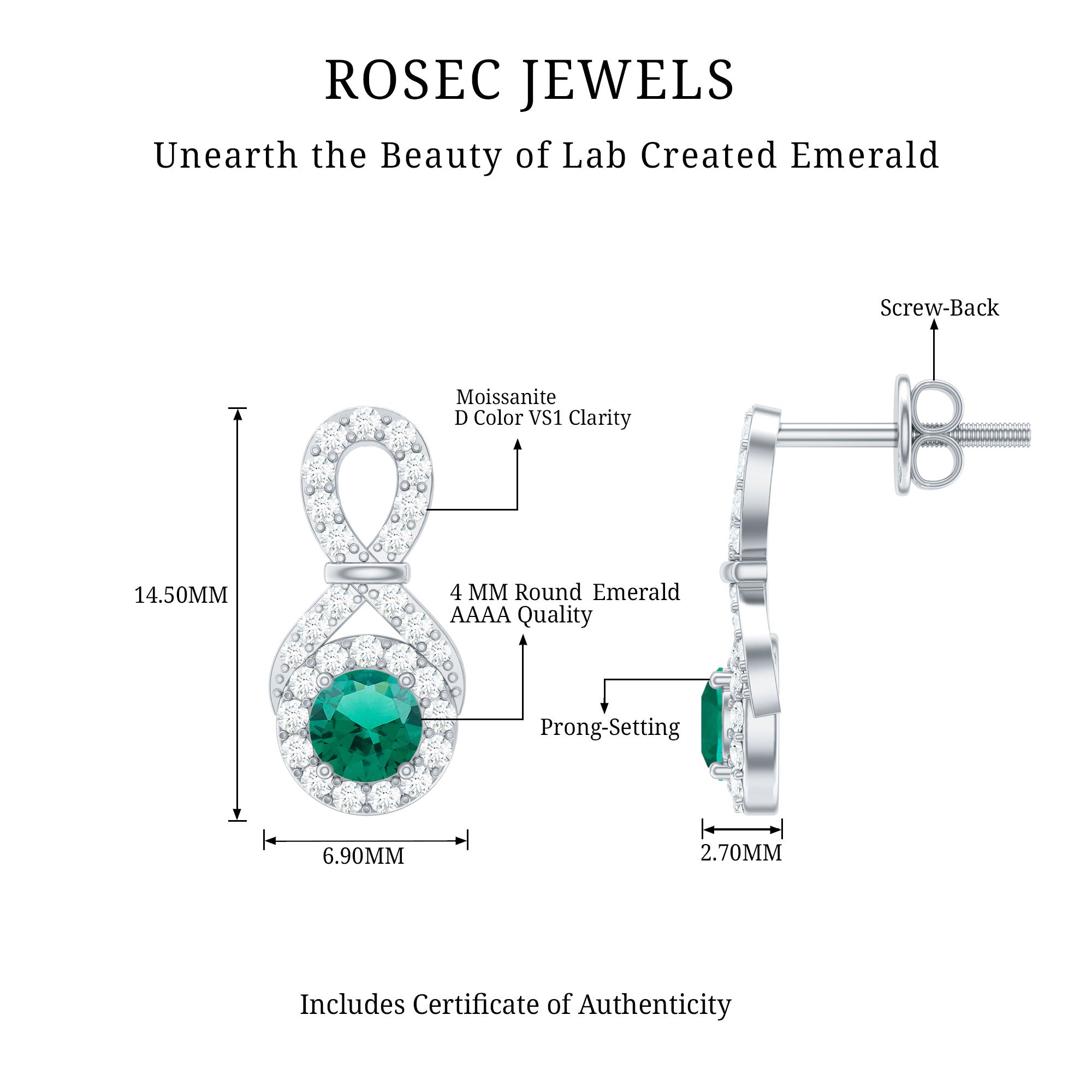 Lab Created Emerald Infinity Stud Earrings with Moissanite
