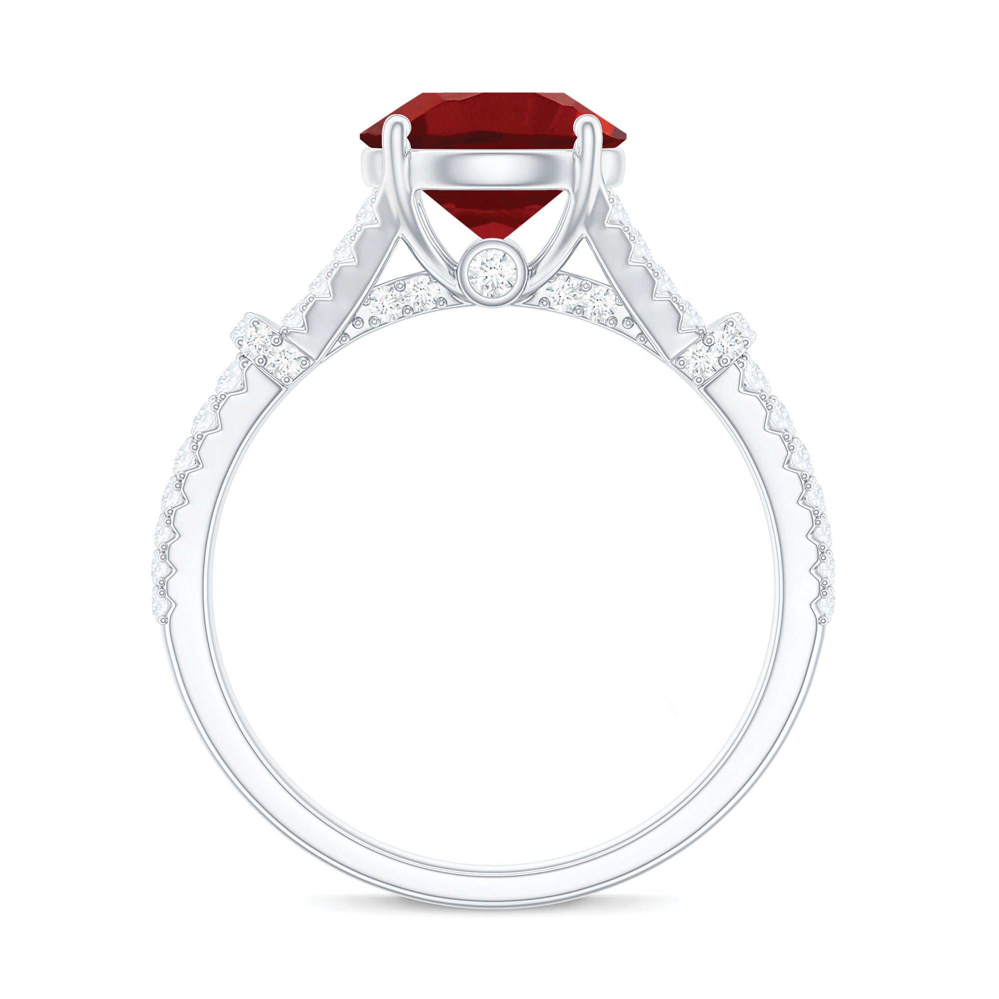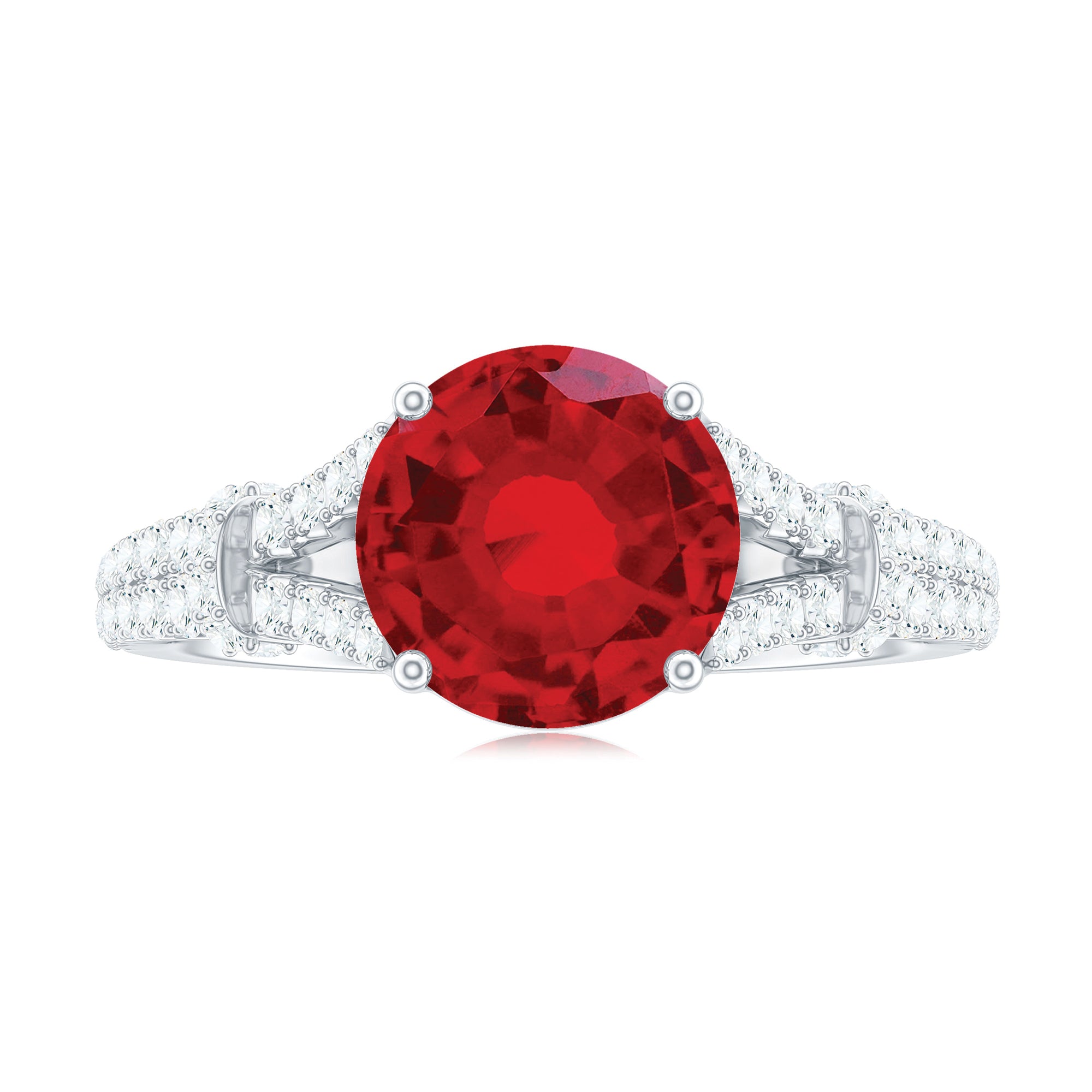 Lab Created Ruby and Diamond Split Shank Engagement Ring