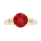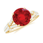 A bold and beautiful way to say FOREVER, this Lab Grown Ruby Engagement Ring brings love to life with rich color and eye-catching design. At the center of the Red Stone Ring sits an 8 MM round shaped lab grown ruby, set in a secure prong setting. What makes the ring even more special is its split shank band. Both sides of the band are decorated with sparkling lab grown diamonds of HI-SI quality, creating a soft shine that beautifully matches the ruby’s bold color. Small diamonds even continue under the center stone along the bridge, adding extra sparkle from every angle. Made for someone who enjoys both color and charm, this Ruby and Diamond Engagement Ring is a mix of simple elegance and a standout style. The AAAA quality lab ruby and detailed work make it perfect for special occasions like engagements or anniversaries. It is available in a wide range of US sizes to make sure it fits just right. Whether you are starting your forever or marking a moment that matters, this Split Shank Engagement Ring is crafted to hold love, beauty, and meaning in one perfect piece. It comes in a lovely jewelry box, ready to be gifted or worn every day as a reminder of your love.