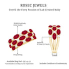 Bold in design and full of timeless charm, this Ruby Wedding Band brings something truly special to your jewelry box. Carefully crafted in 14k yellow gold plated silver, this Three Row Wedding Band is all about statement-making elegance with thoughtful details that you will admire every time you wear it. The design features three stunning rows of oval shaped lab created rubies, set horizontally in an East West style with alternatively set round cut lab grown diamonds. The wide band style and structured layout give it a vintage feel, while the clean lines and lab grown stones add a contemporary twist. It is the kind of piece that works just as well for a formal event as it does with your favorite outfit on a night out. Whether you are celebrating an anniversary, marking a personal milestone, or simply treating yourself to something bold and meaningful, this Ruby and Diamond Wedding Band is designed to stand out. Its elegant and strong presence make it perfect as a wedding band, anniversary ring, or even a statement cocktail ring. Every detail is polished to perfection, giving you a luxurious finish that lasts. With its perfect mix of tradition and flair, this piece is a stunning symbol of lasting love, confidence, and individual style.
