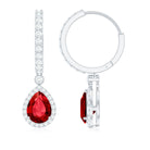 Lab Created Ruby and Moissanite Teardrop Hoop Earrings