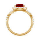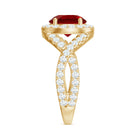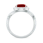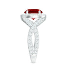 Lab Created Ruby Criss Cross Engagement Ring with Moissanite Halo