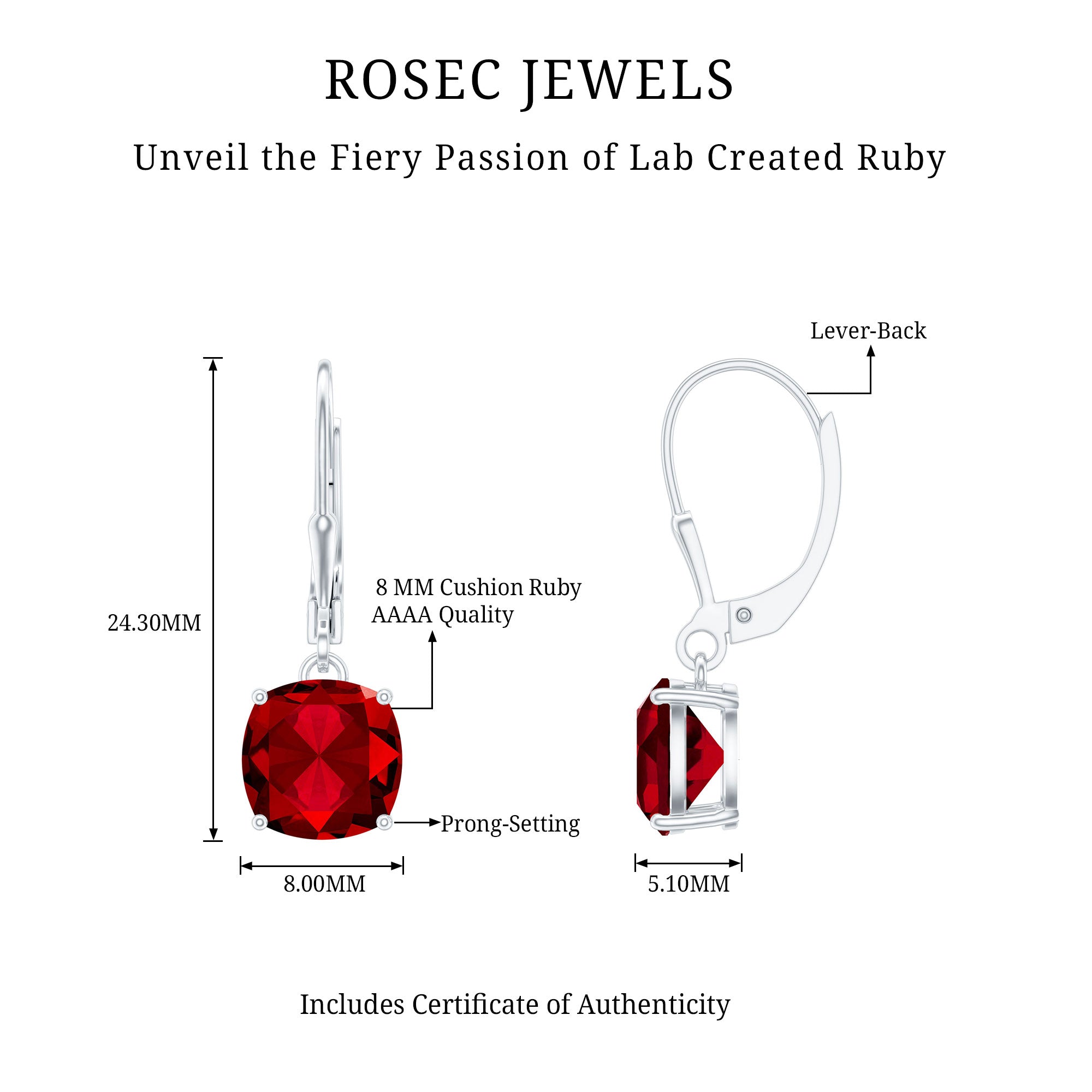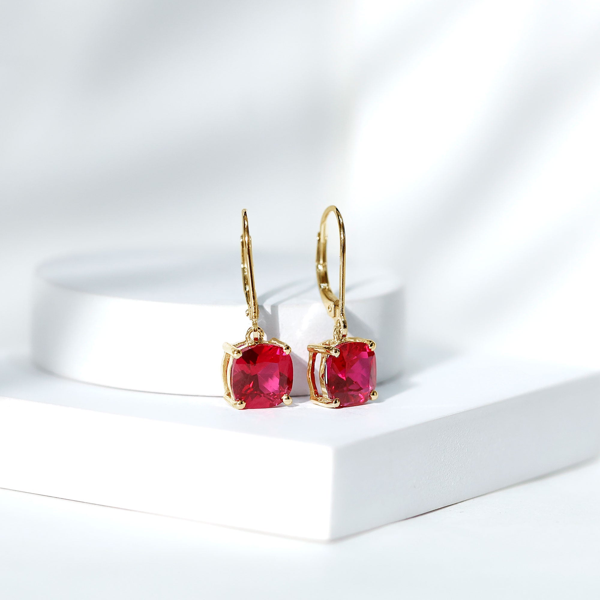 Create a look of timeless sophistication with these stunning Lab Created Ruby Earrings, designed to add a touch of feminine charm and modern elegance. Their simple design makes a striking statement while remaining versatile enough for any occasion, from everyday wear to special celebrations. Each earring features an exquisite 8 MM cushion cut lab created ruby, securely set in prong setting that allows the gemstone’s vivid color and brilliance to shine. The ruby drop gently suspends from a sleek lever back closure, offering comfort, security, and graceful movement. These Solitaire Drop Earrings are a beautiful blend of simplicity and individuality, allowing the single gemstone to stand out with a captivating presence. Crafted with AAAA quality lab created rubies, they deliver exceptional sparkle and rich color that instantly elevates any outfit. Whether paired with a casual ensemble or a formal look, these Cushion Cut Earrings add effortless sophistication in moments. Thoughtfully designed and exceptionally crafted, these Ruby Drop Earrings also make a heartfelt and memorable birthday gift for someone special.