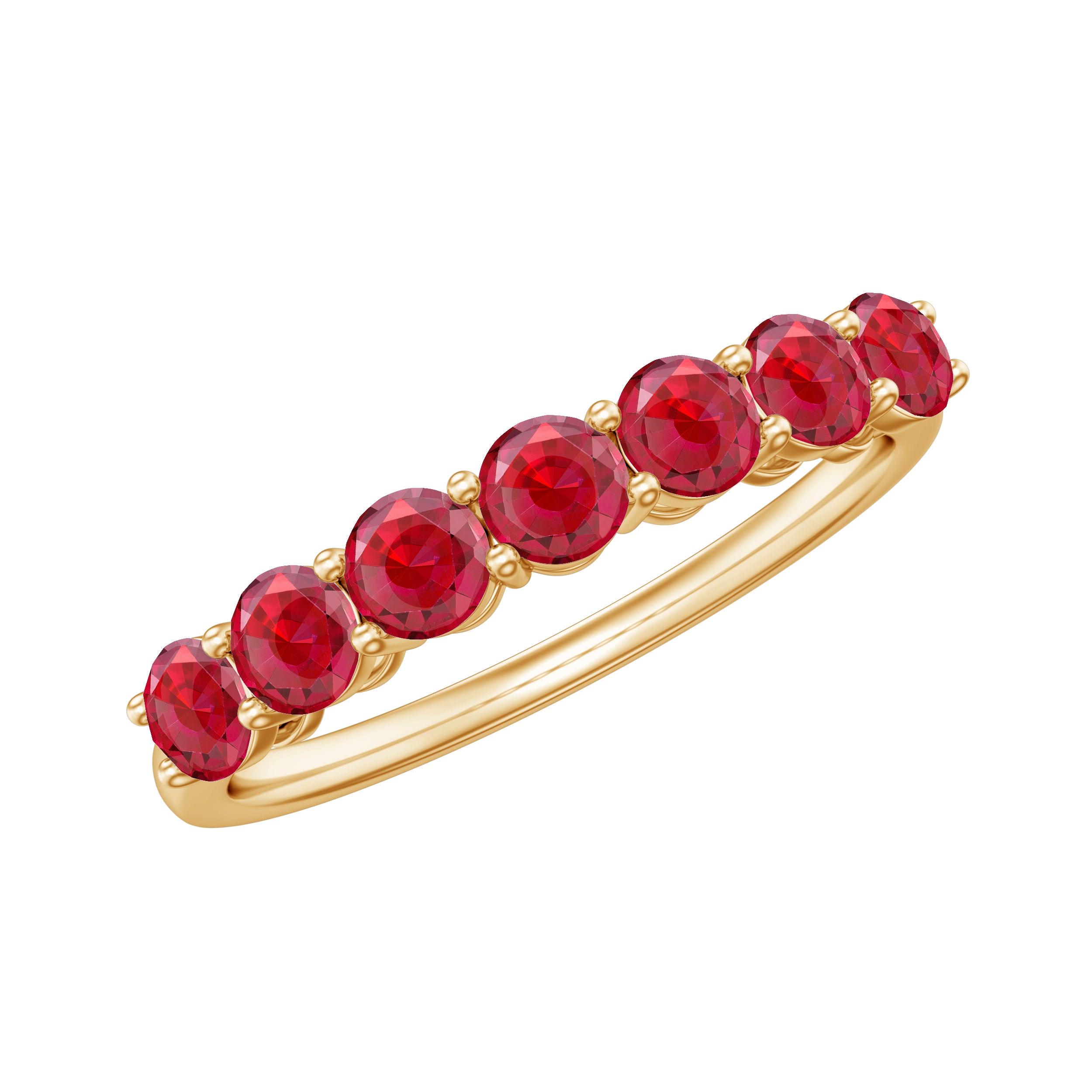 Impress her with the elegant simplicity of this 7 Stone Ring, made of solid gold and featuring seven round cut lab-created ruby set in a shared prong setting. Perfect for everyday wear or special occasions such as birthdays, anniversaries, and parties.
