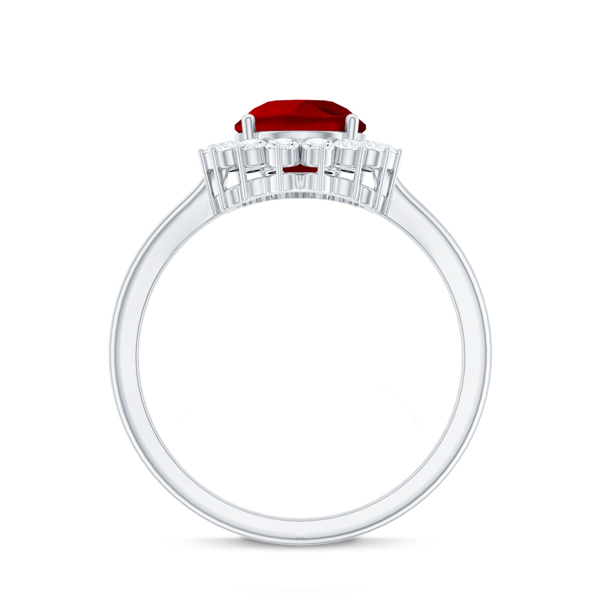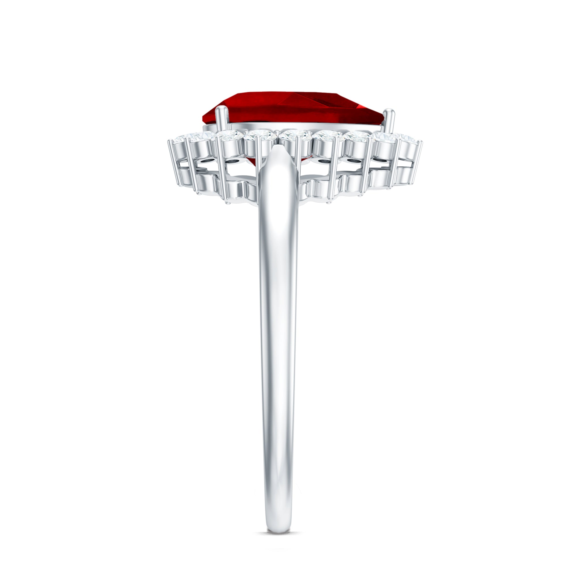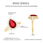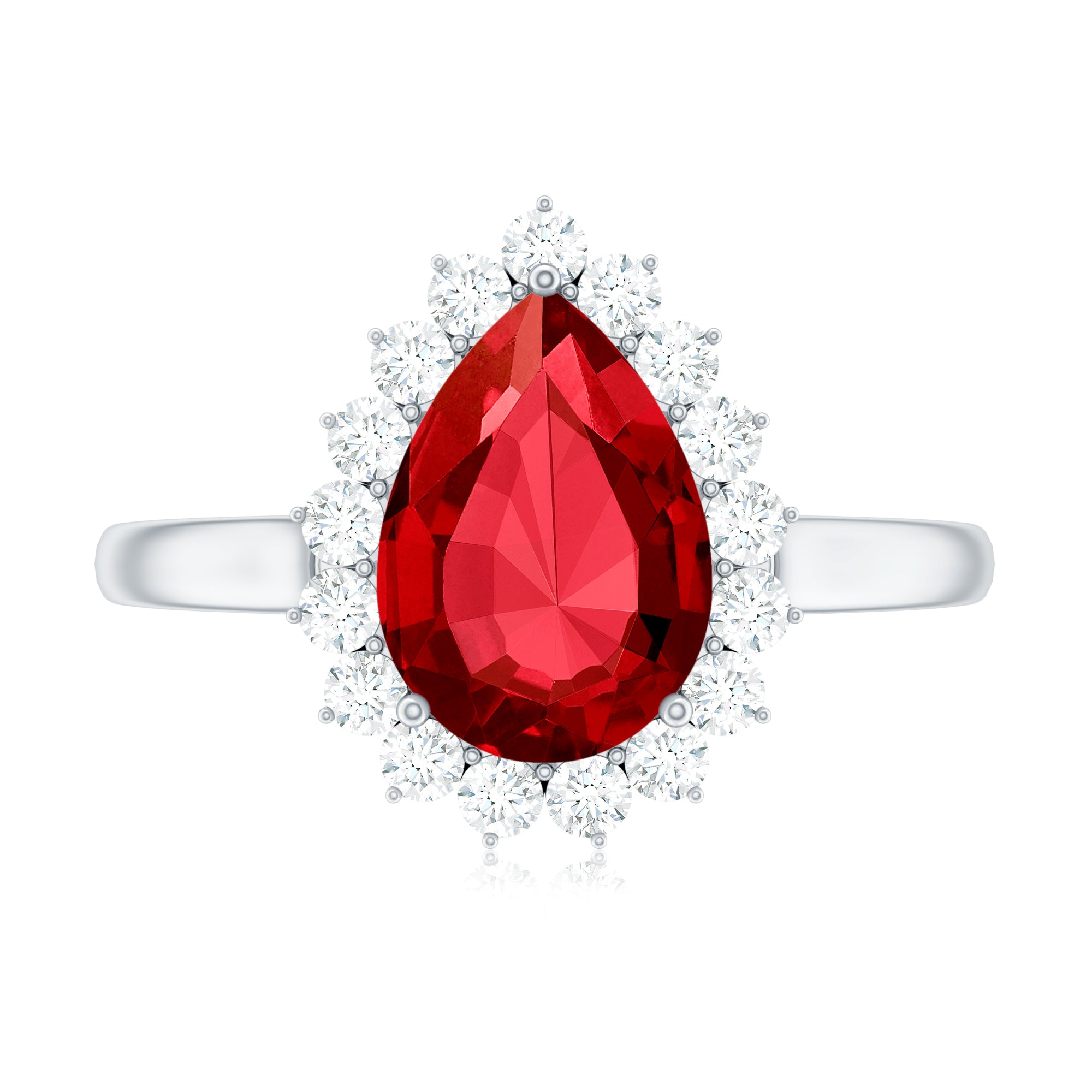 Lab Created Ruby Teardrop Engagement Ring with Diamond Halo