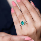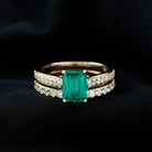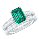 Lab Grown 6X8 mm Emerald Cut Emerald Engagement Ring with Wedding Band