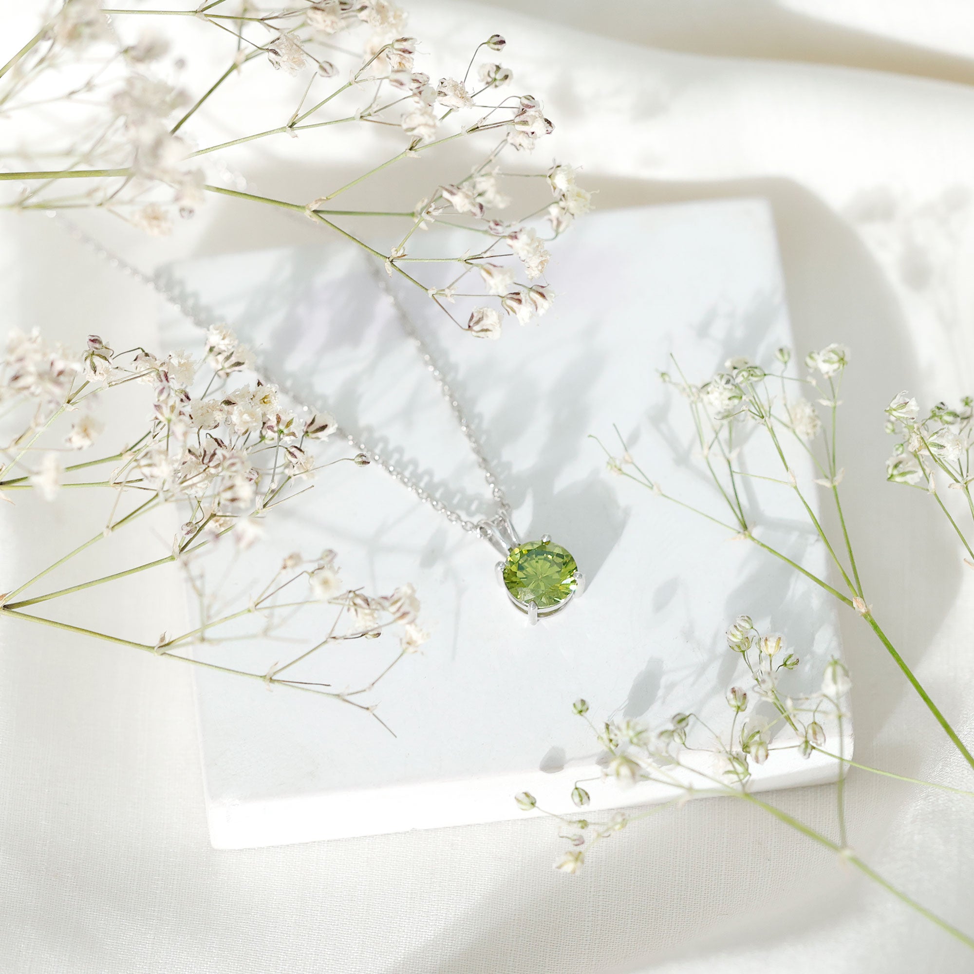 Lab Grown 8 MM Green Sapphire Solitaire Locket with Silver Chain