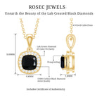 Turn heads and make a lasting impression with this Black Diamond Pendant, a bold and elegant piece that effortlessly elevates any look. Crafted in 14k yellow gold plated sterling silver, this pendant is designed to celebrate strength, style, and sophistication in one striking statement. At its heart lies a 6 MM cushion cut lab created black diamond, securely set in prong setting. Encircling the center gem is a delicate halo of round brilliant lab grown white diamonds, providing a stunning contrast that highlights the dark allure of the centerpiece. The halo sparkles with refined elegance, giving the Black and White Diamond Necklace a luminous look. Together, the black and white stones create a timeless monochrome palette, effortlessly blending romance with modern edge. Suspended gracefully from a cable chain with the help of a standard bail, this Cushion Cut Necklace sits perfectly on the neckline, making it ideal for both everyday wear and special occasions. Whether layered with other pieces or worn alone, it adds a polished touch of glamour to any outfit. A meaningful and versatile gift, this Diamond Halo Pendant is perfect for birthdays, anniversaries, or simply celebrating her bold, beautiful spirit.