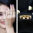 Elevate your style with our Full Eternity Band, a timeless symbol of everlasting love. This exceptional ring alternates between captivating Round Lab Grown Black Diamonds and brilliant Moissanite, creating a great blend of darkness and sparkle. Crafted to perfection, its a statement piece that symbolizes both elegance and individuality, designed to capture hearts for eternity.