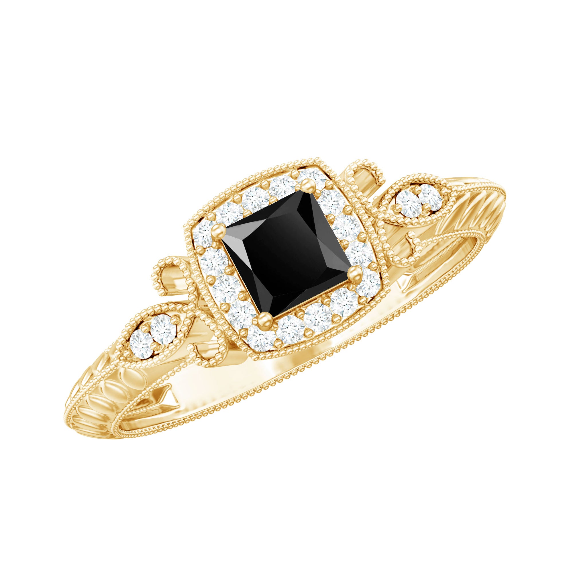 A perfect addition to eternal commitments, the Art Deco Ring seamlessly blends modern sophistication with timeless elegance. This Promise Engagement Ring features a mesmerizing 6 mm Princess Cut Black Diamond that takes center stage, surrounded by sparkling White Lab Grown Diamond gemstones. This exquisite lab grown Black and White Diamond Ring is delicately crafted with intricate Beaded Detailing, showcasing the mastery of Aaaa Quality Black Diamond and Ef-Vs Quality Diamonds defines a trusted symbol of innovation and craftsmanship.