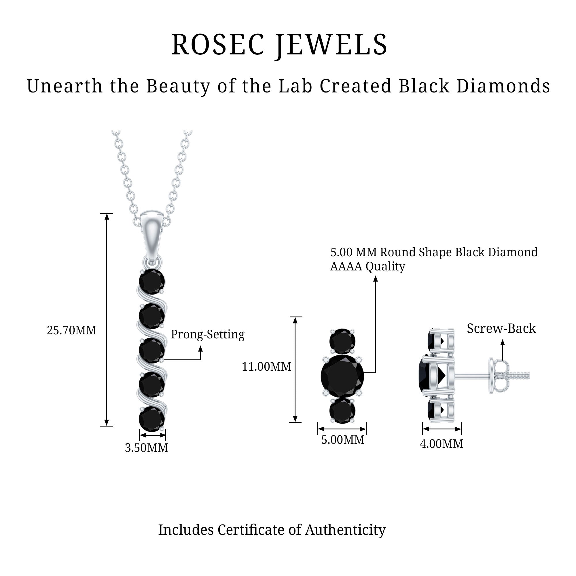 Lab Grown Black Diamond Bar Necklace and Earrings Set