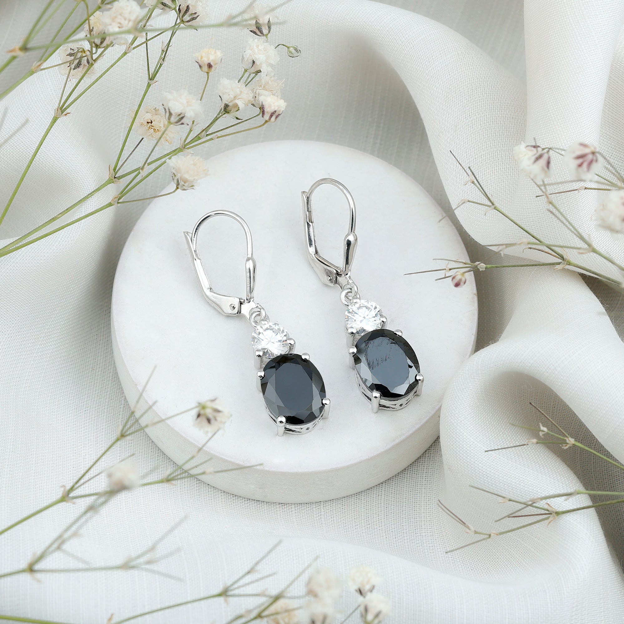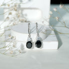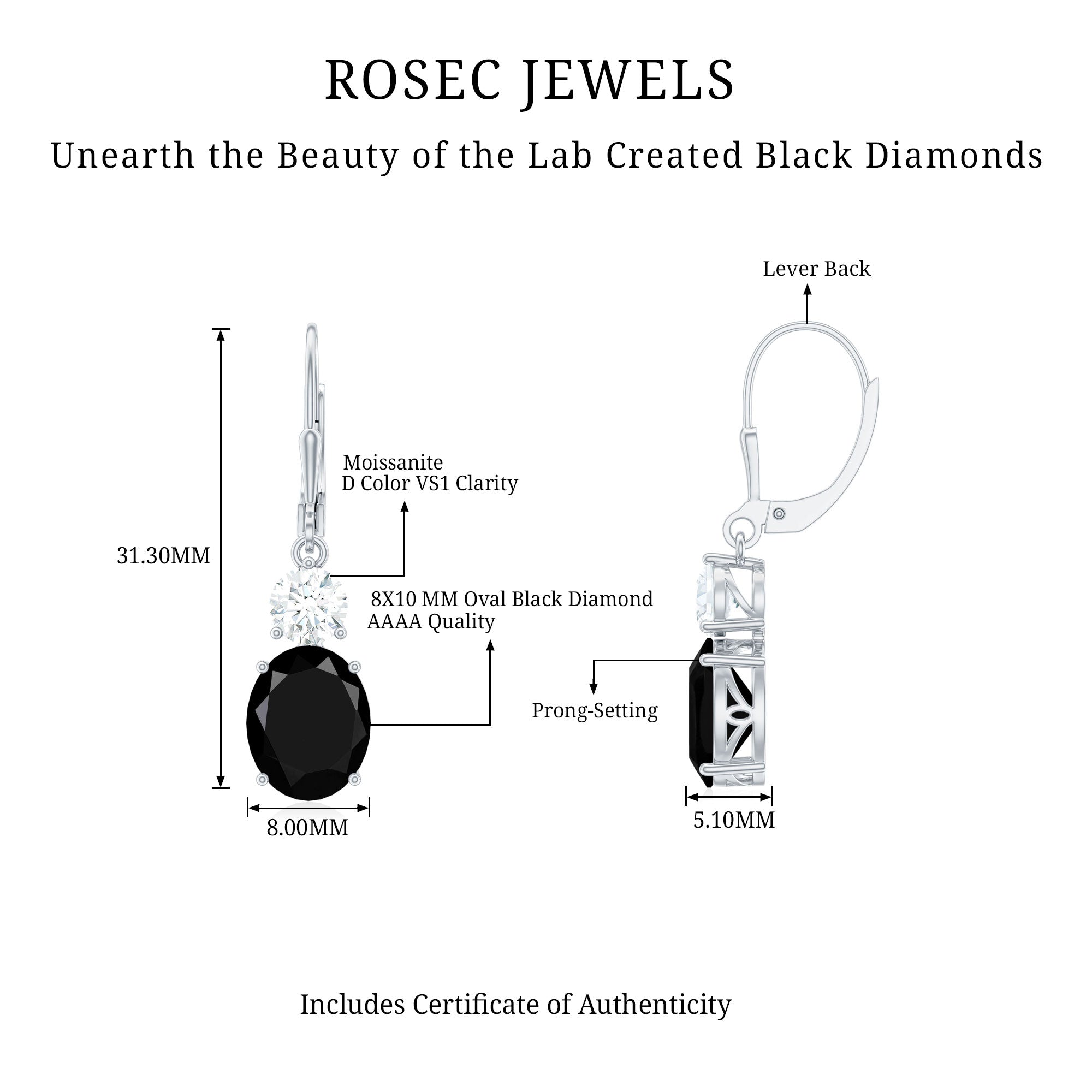 Experience timeless elegance with these gorgeous Lab Grown Black Diamond Earrings that really stand out and draw all eyes to you. Made from white gold plated silver, these Hoop Drop Earrings feature an 8X10 MM oval cut lab created black diamond and a 5 MM round cut Moissanite in a prong setting that dangle beautifully from a secure leverback closure, reflecting light with every move. Blending modern and vintage styles, they exude luxury and sophistication. Simple yet chic, these Black Gemstone Earrings boast a detailed design that grabs attention while keeping an elegant vibe. As the perfect example of classic style, these Black Diamond Hoop Earrings shine with beauty and are essential for your jewelry collection. Known for their elegance and charm, they offer a modern classic look suitable for everyday wear. So, enhance any outfit with these stunning Monochrome Earrings that bring a hint of luxury and contrast to your appearance.