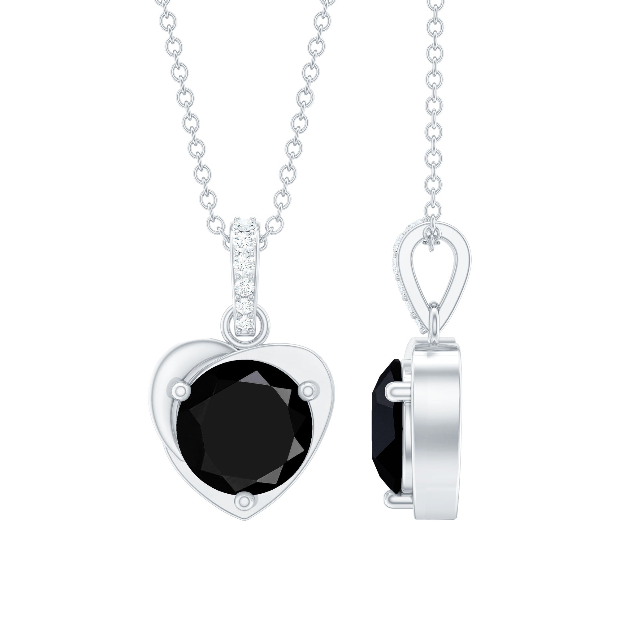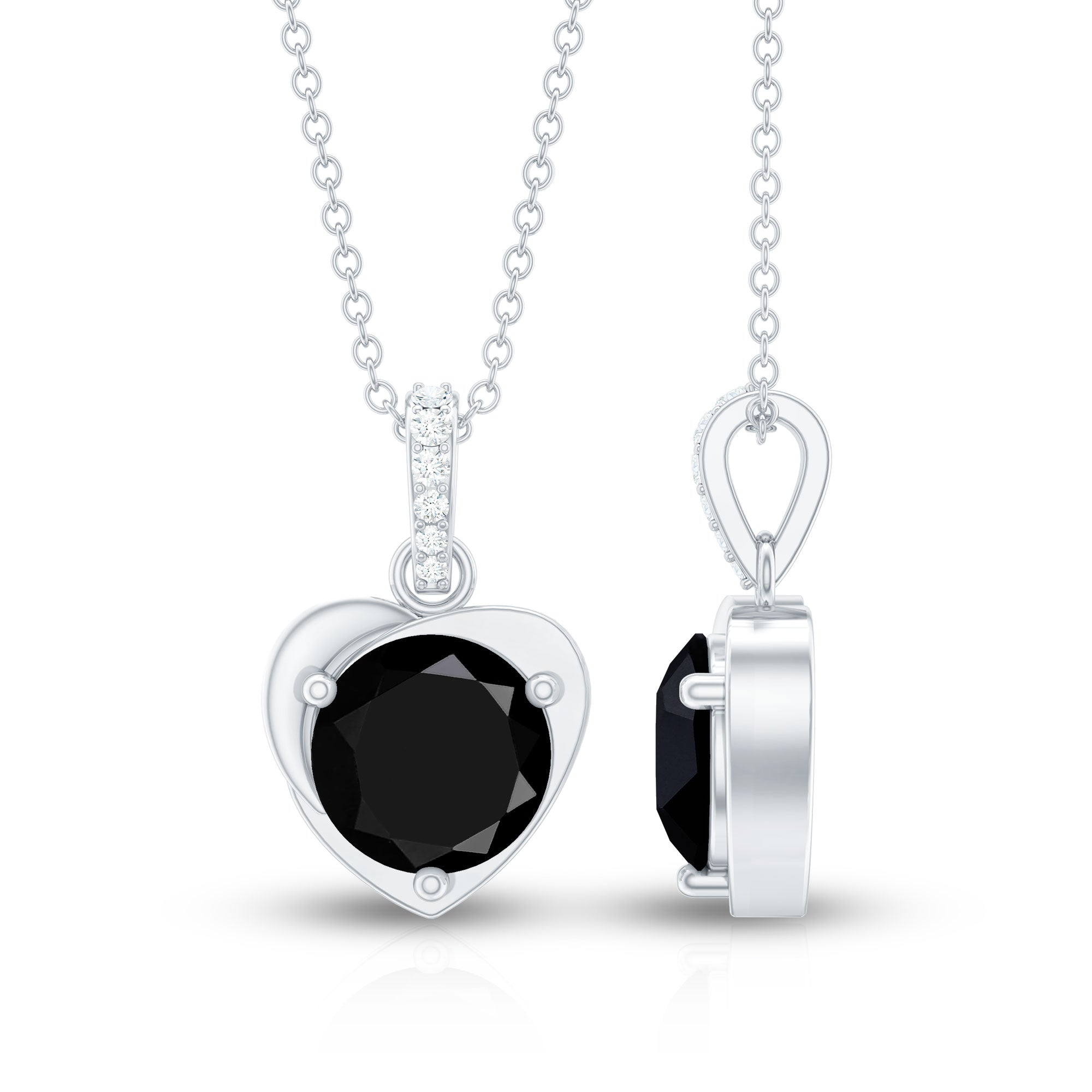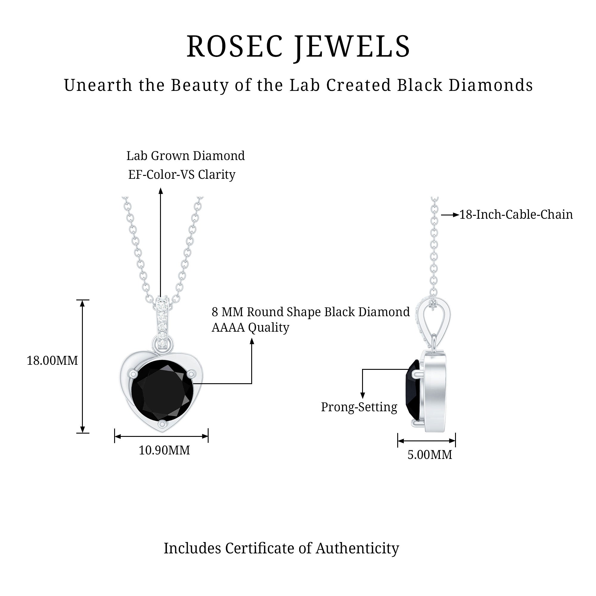 Love takes exquisite form with our Heart Pendant featuring a stunning 8 mm Round Shape Black Diamond set in Prong Setting. The intricately crafted heart design is elevated by a White Diamond accented Bail (Synthetic), adding a touch of brilliance with Aaaa Quality Black Diamonds and Ef-Vs quality Diamonds to symbolize everlasting love. This timeless Black Diamond Pendant Necklace (Lab Created) is a perfect expression of love that transcends time and trends. Elevate your style and celebrate love with this captivating Black and White Diamond Necklace from Rosec Jewels.