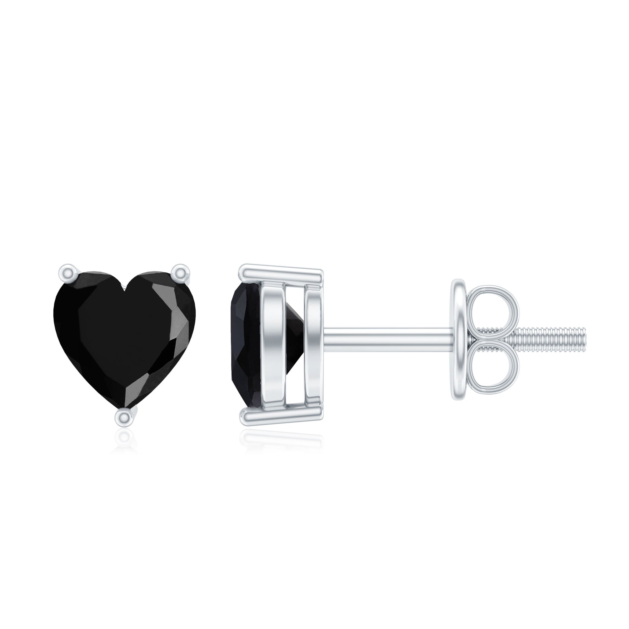 Lab Grown Black Diamond Heart Stud Earrings With Screw Back