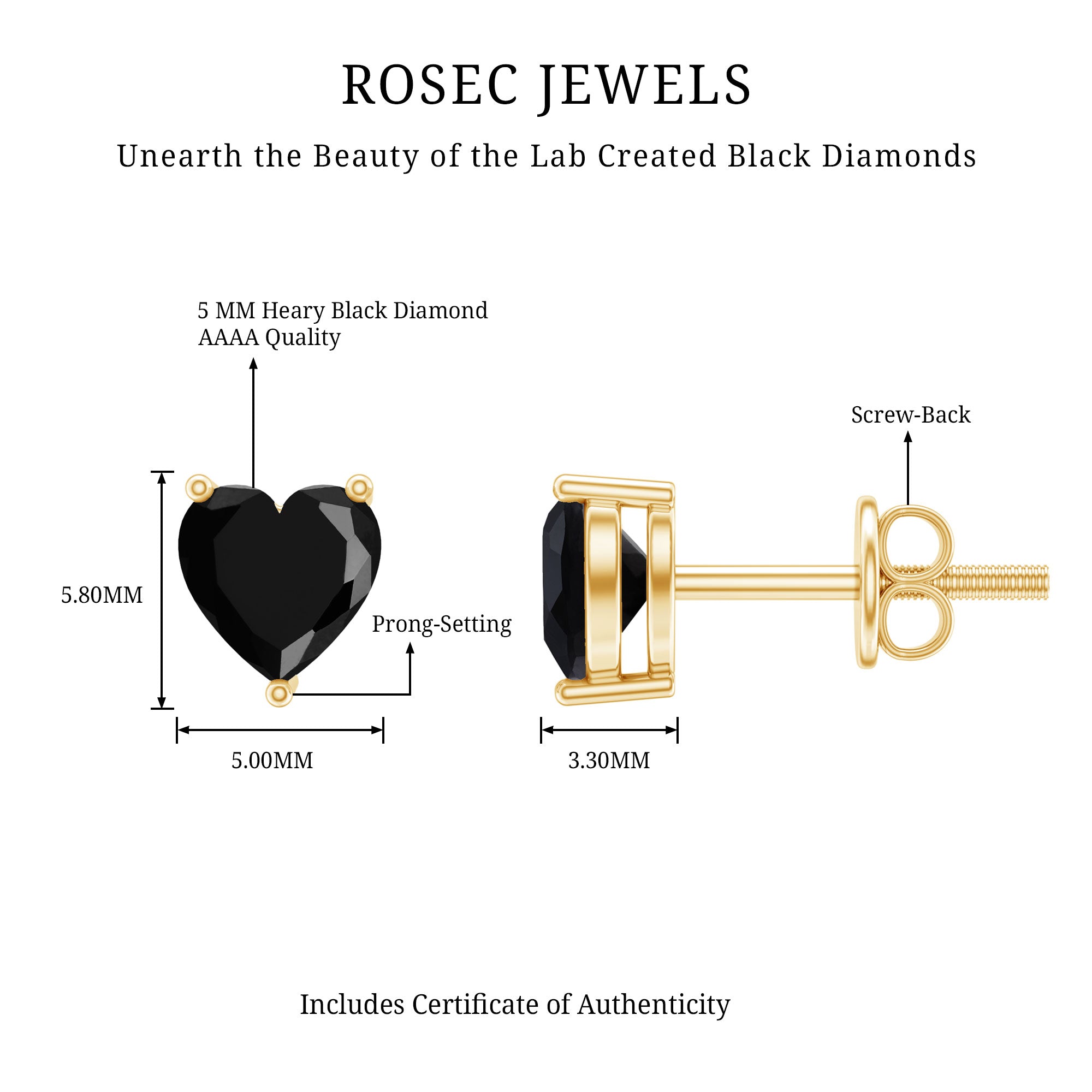 Explore the beauty of these Heart Earrings exquisitely designed to impress everyone around you. Feature 5 mm Heart Shaped Lab Grown Black Diamond gracefully set in prong setting. The luxurious allure of Aaaa quality Black Diamond adds an extra hint of sparkle and elegance to the design. These Black Diamond Stud Earrings come with Screw-back closures which makes them convenient for everyday wear. These Solitaire Earrings are handcrafted by Rosec Jewels, where each piece offers a touch of sophistication.