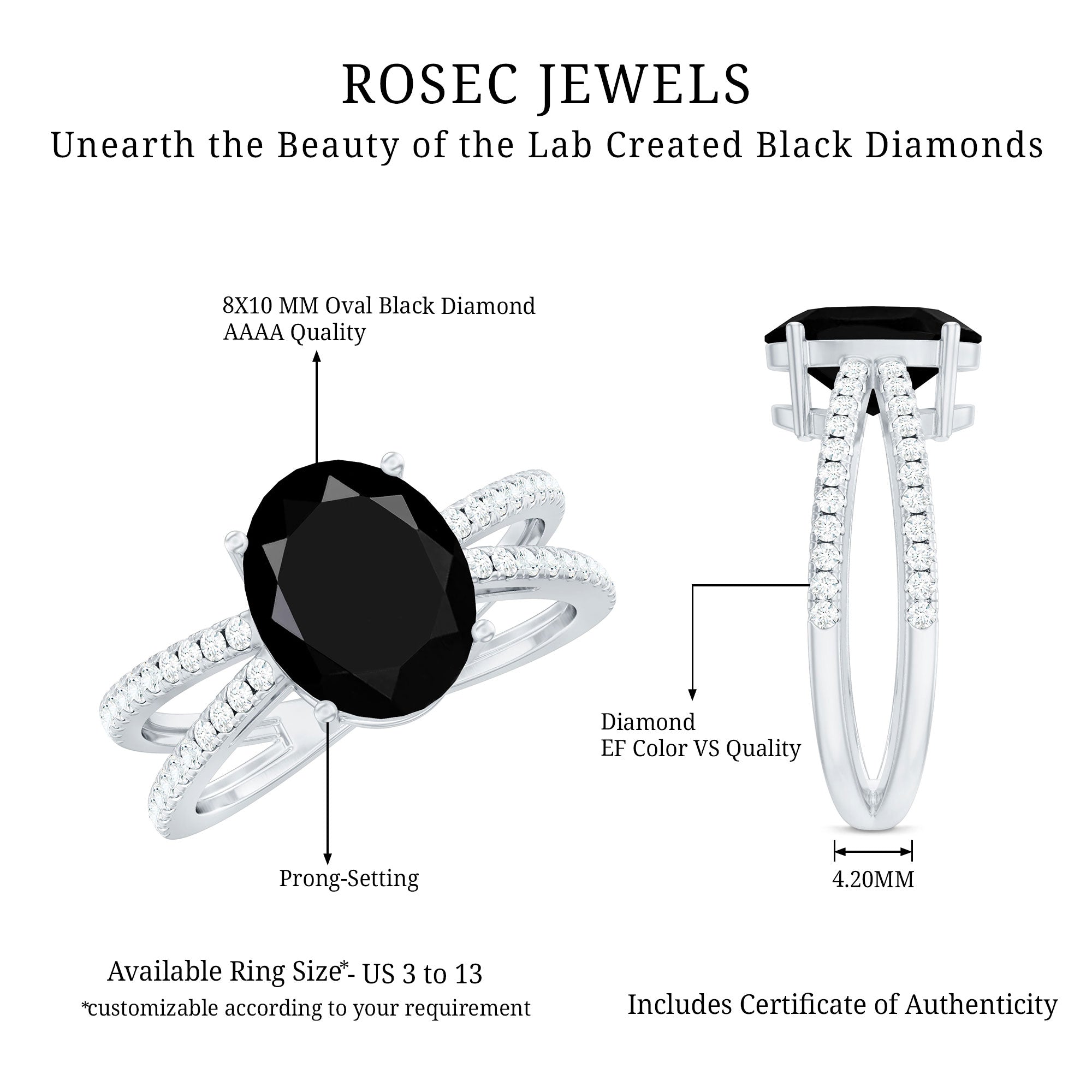 Adorn her finger with the timeless elegance of this lab-grown Black Diamond Engagement Ring. Meticulously curated, this Solitaire Engagement Ring showcases an 8x10 mm Oval-Shaped Black Diamond, symbolizing sophistication and uniqueness. The split shank adds a modern touch, while delicate White Lab-Grown Diamond gemstones amplify its allure. Handcrafted properly, this Black and White Diamond Ring is a meaningful accessory as it can also serve as an affordable April Birthstone Ring. It comes with a certificate of authenticity, ensuring its superior quality. If you are looking for a Criss Cross Ring thats timeless and speaks volumes about your love, this is the one.