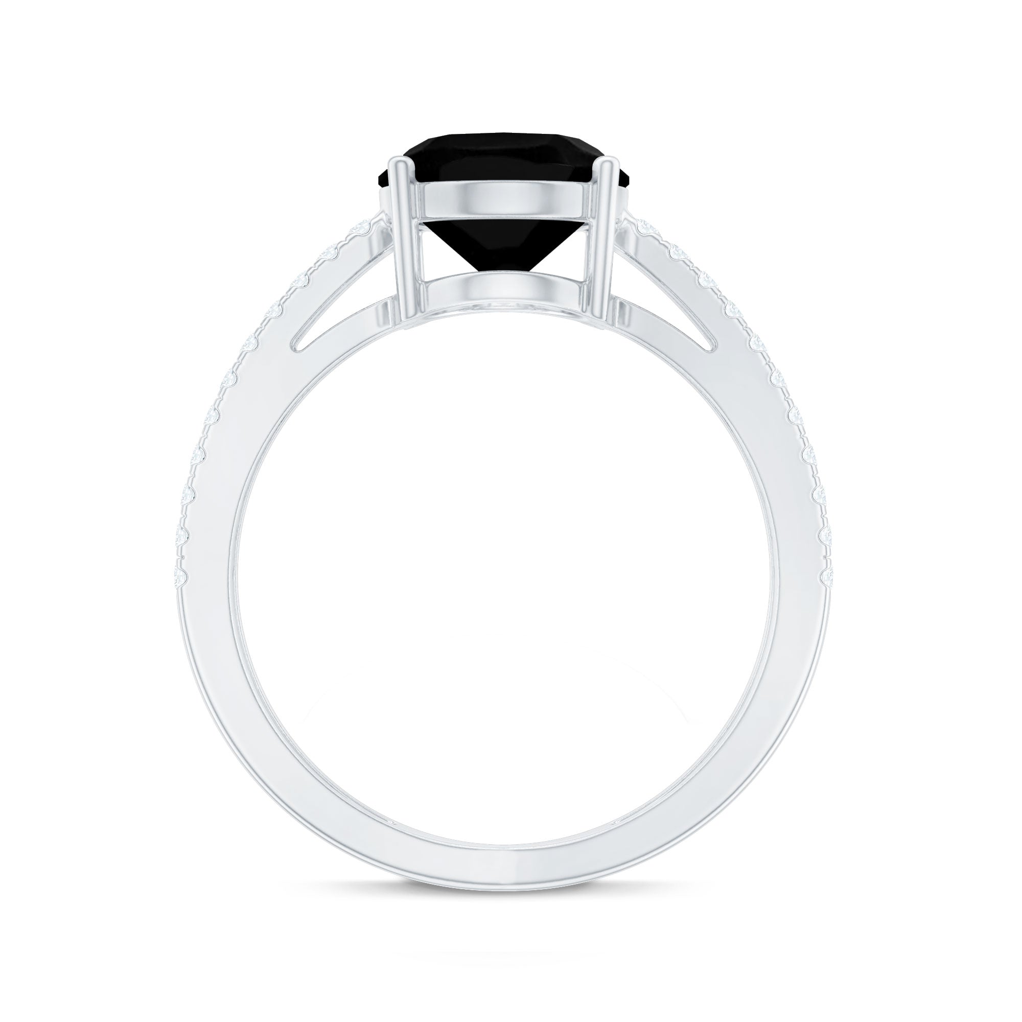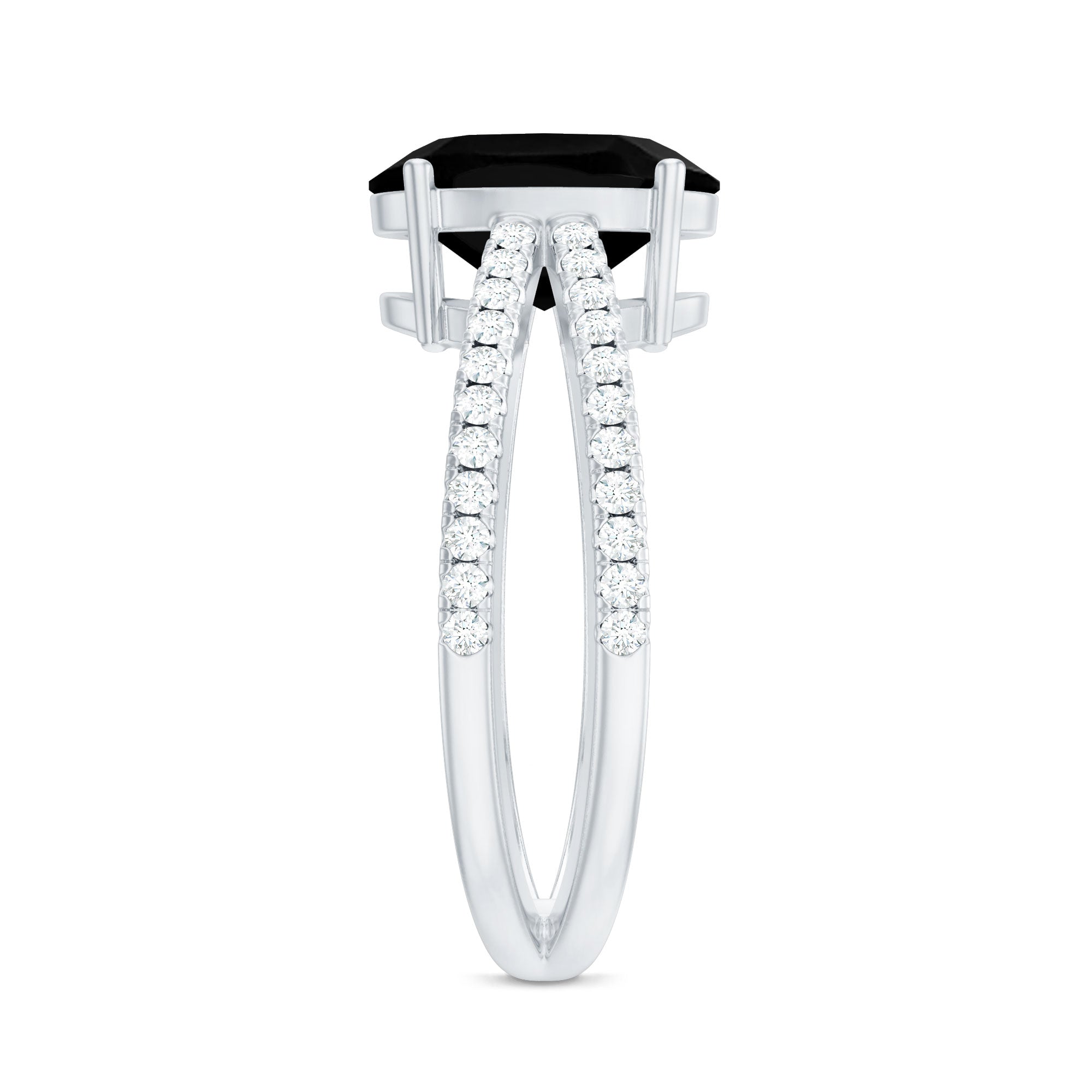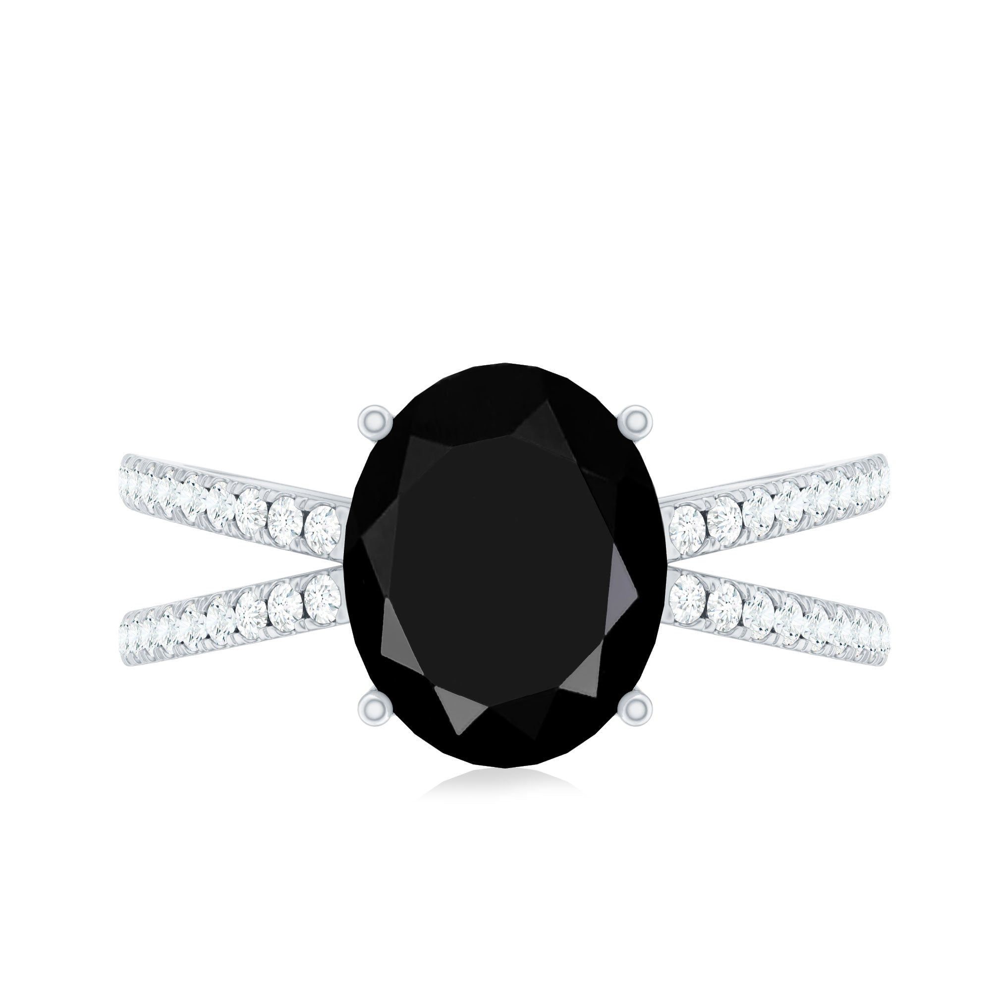 Lab Grown Black Diamond Oval Engagement Ring with Diamond Accent