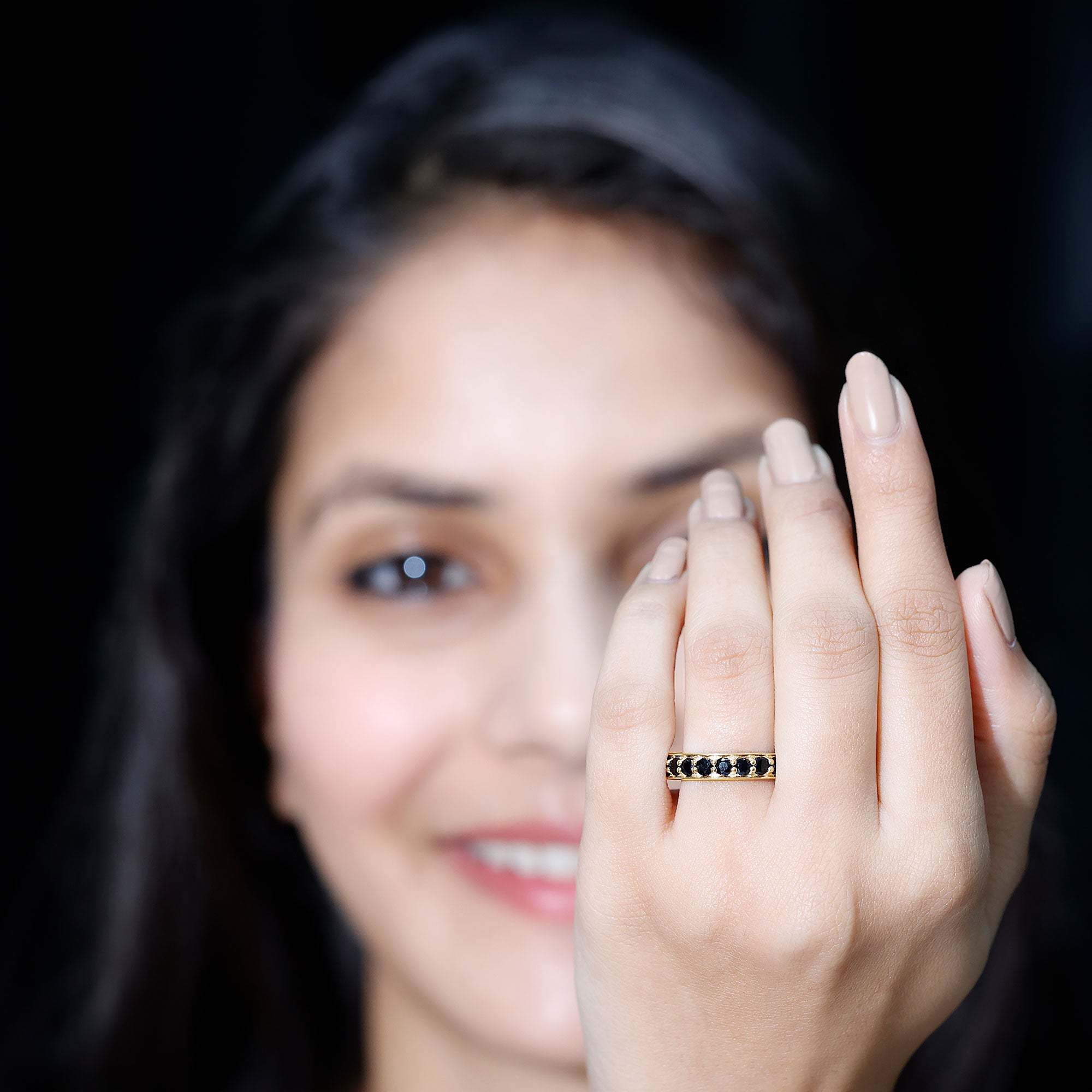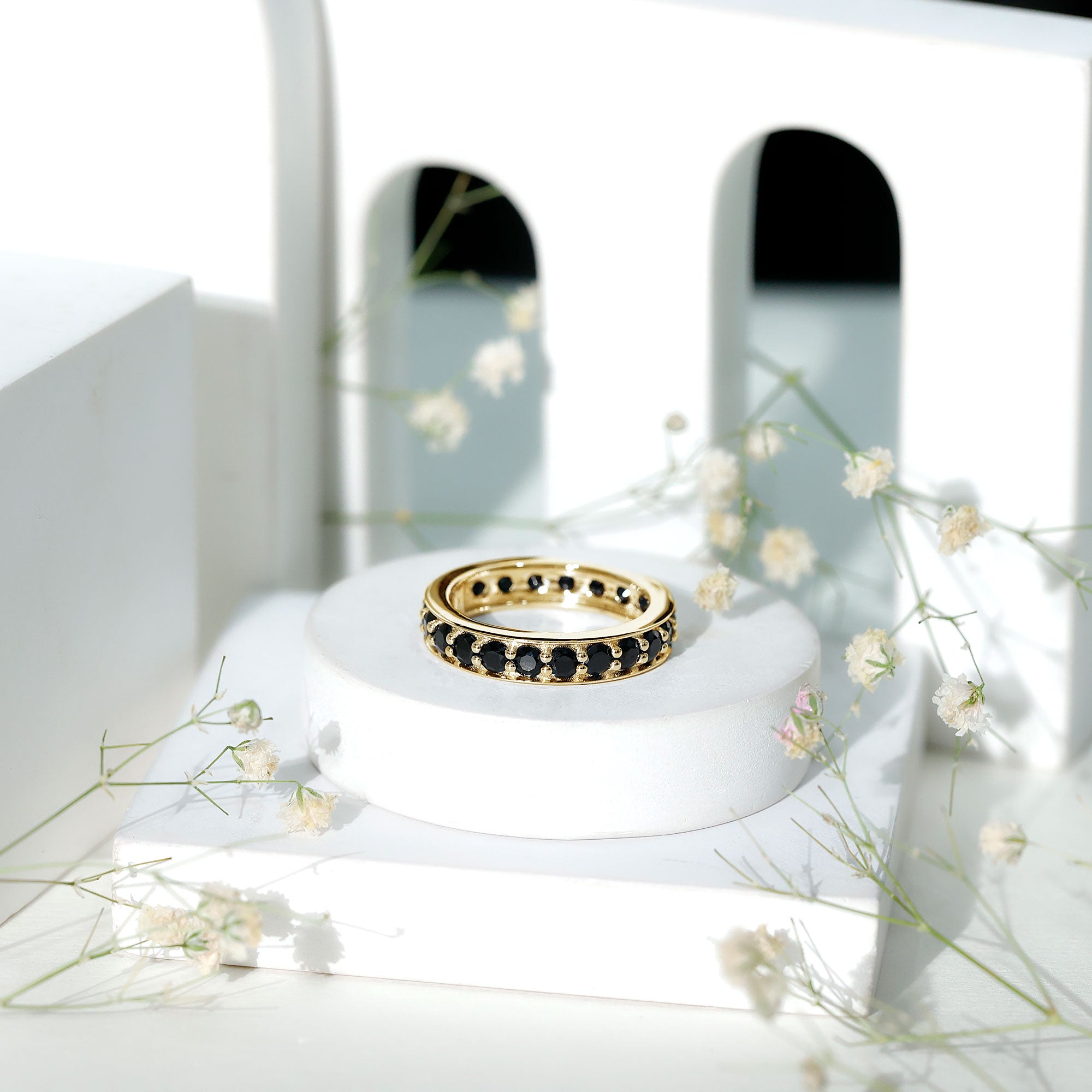 Enhance your special day with the trendy and aesthetic Lab Created Black Diamond Eternity Ring. This exquisite ring will add charm and a luxurious feel to the occasion. Dont hesitate, seize the opportunity and make it yours for that unforgettable moment.