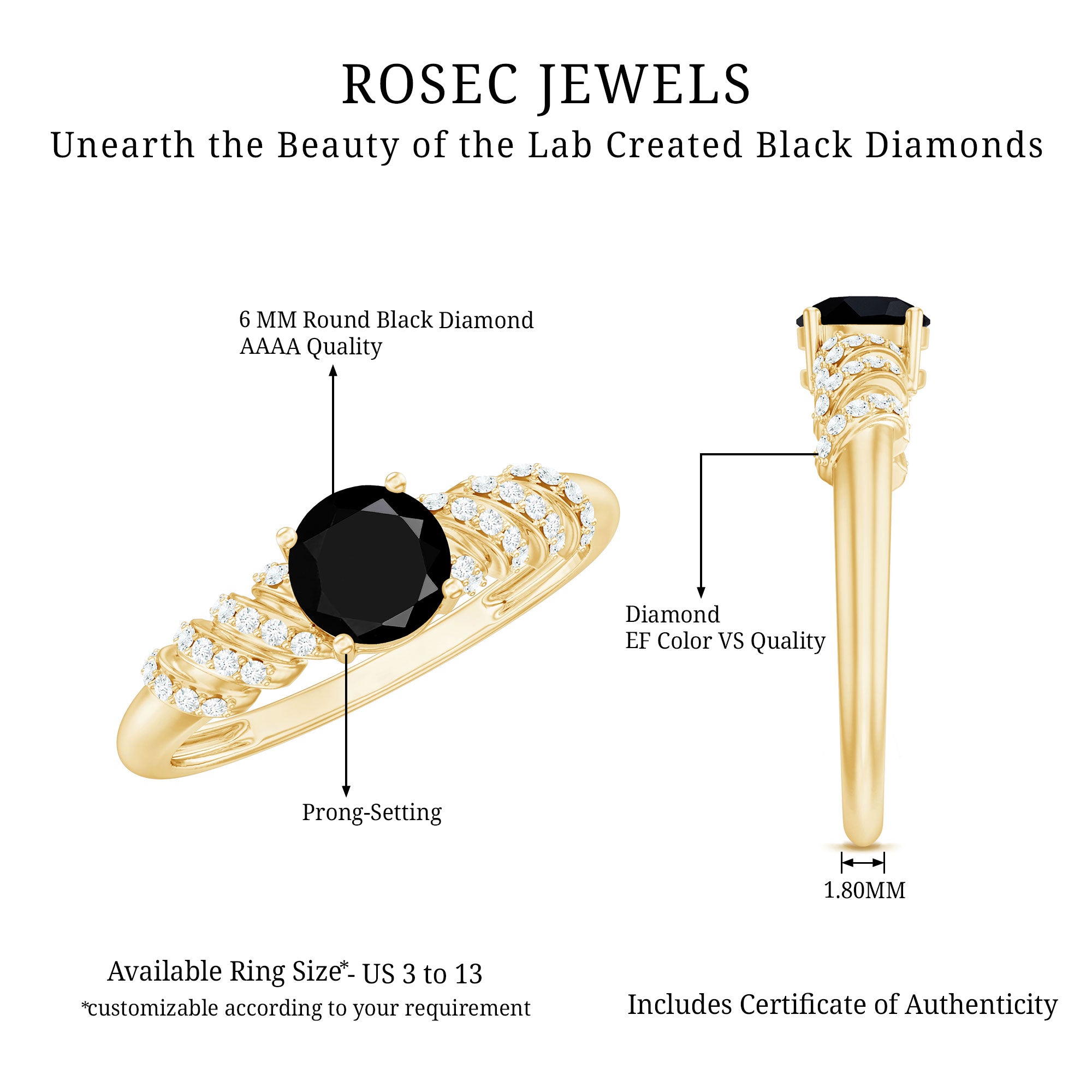 Profess everlasting love with this mesmerizing lab grown Black Diamond Ring that captivates with 6 mm Round Shape Black Diamond of Aaaa quality set as a center stone in Prong Setting. Accentuated by dainty sparkling White Lab Grown Diamond gemstones set in wave pattern over the band, the Solitaire Promise Ring emanates timeless elegance. Elevate your promise with this stunning Black and White Diamond Ring (Unnatural) that combines modern luxury and conscious craftsmanship. Designed with simplicity, this Black Stone Ring is also budget-friendly, proving that timeless beauty doesnt have to come at a high cost.