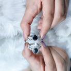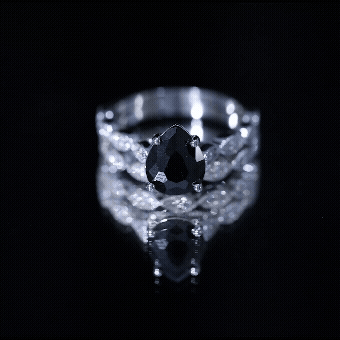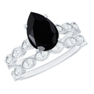 Lab Grown Black Diamond Teardrop Engagement Ring with Moissanite Wedding Band