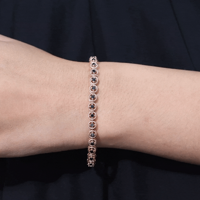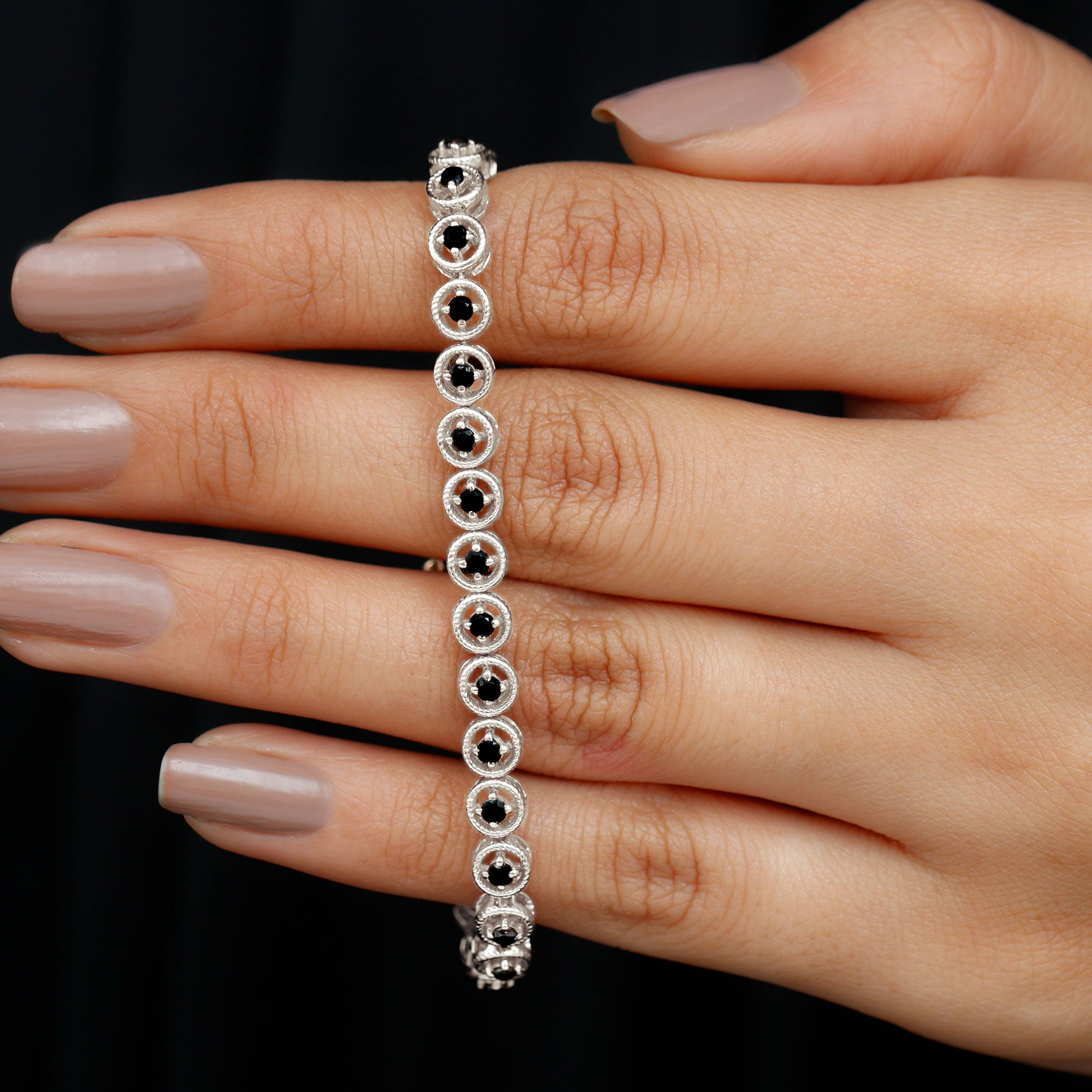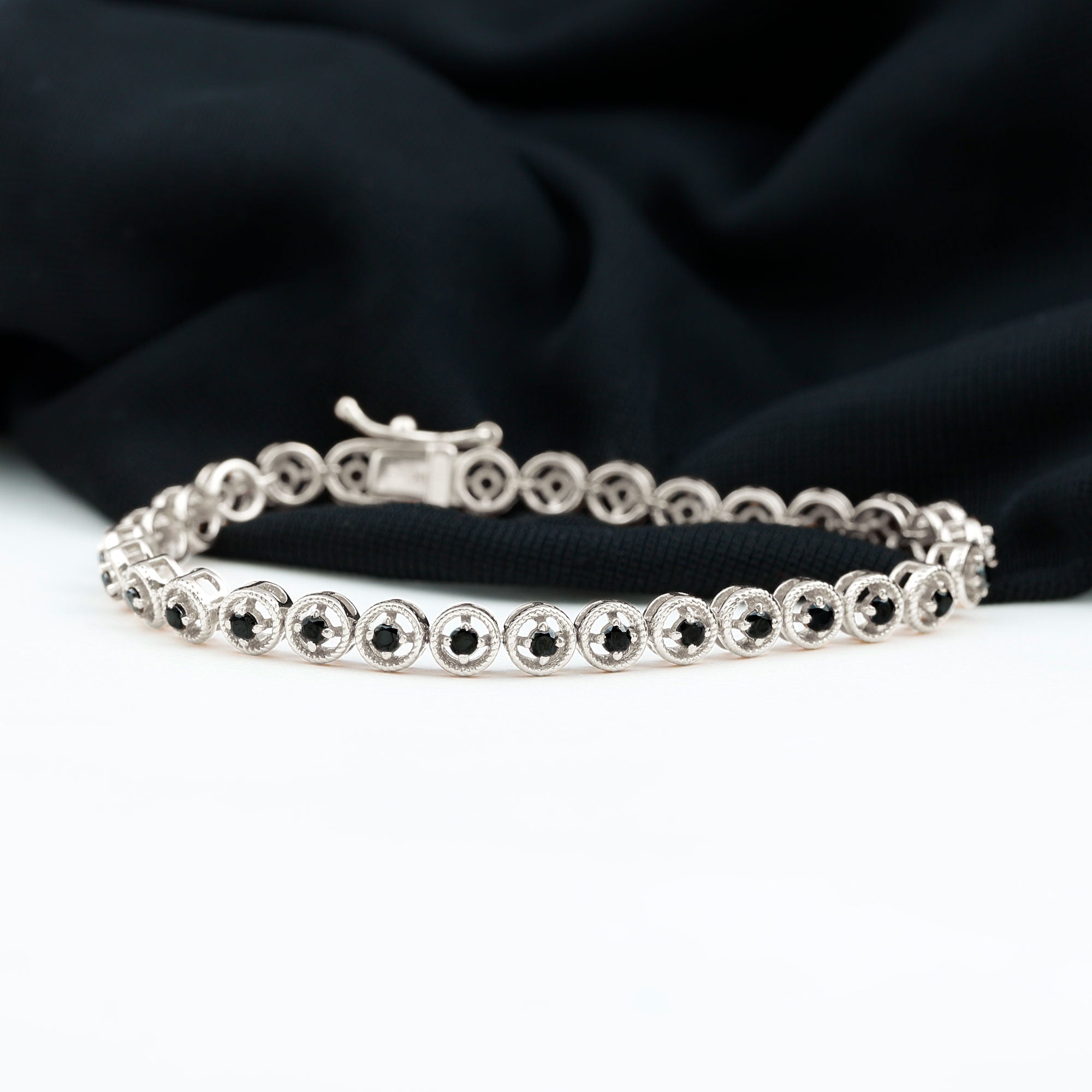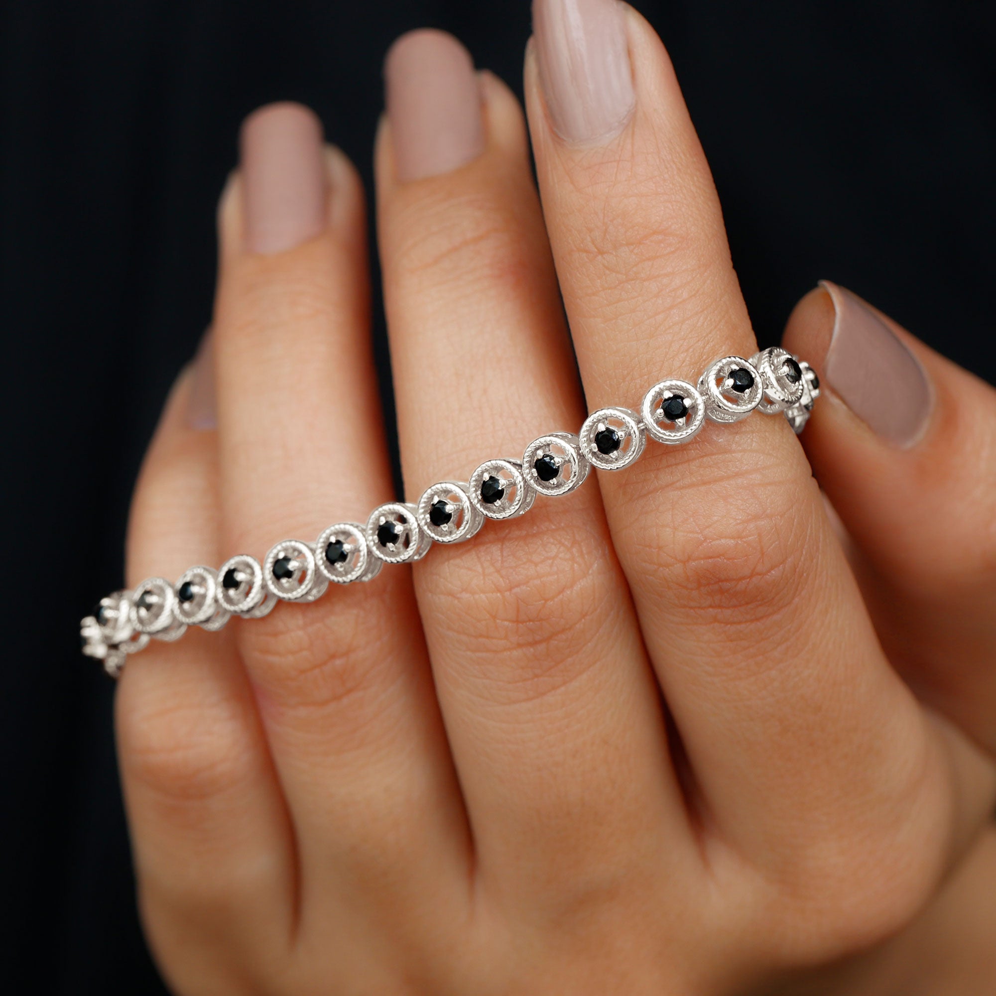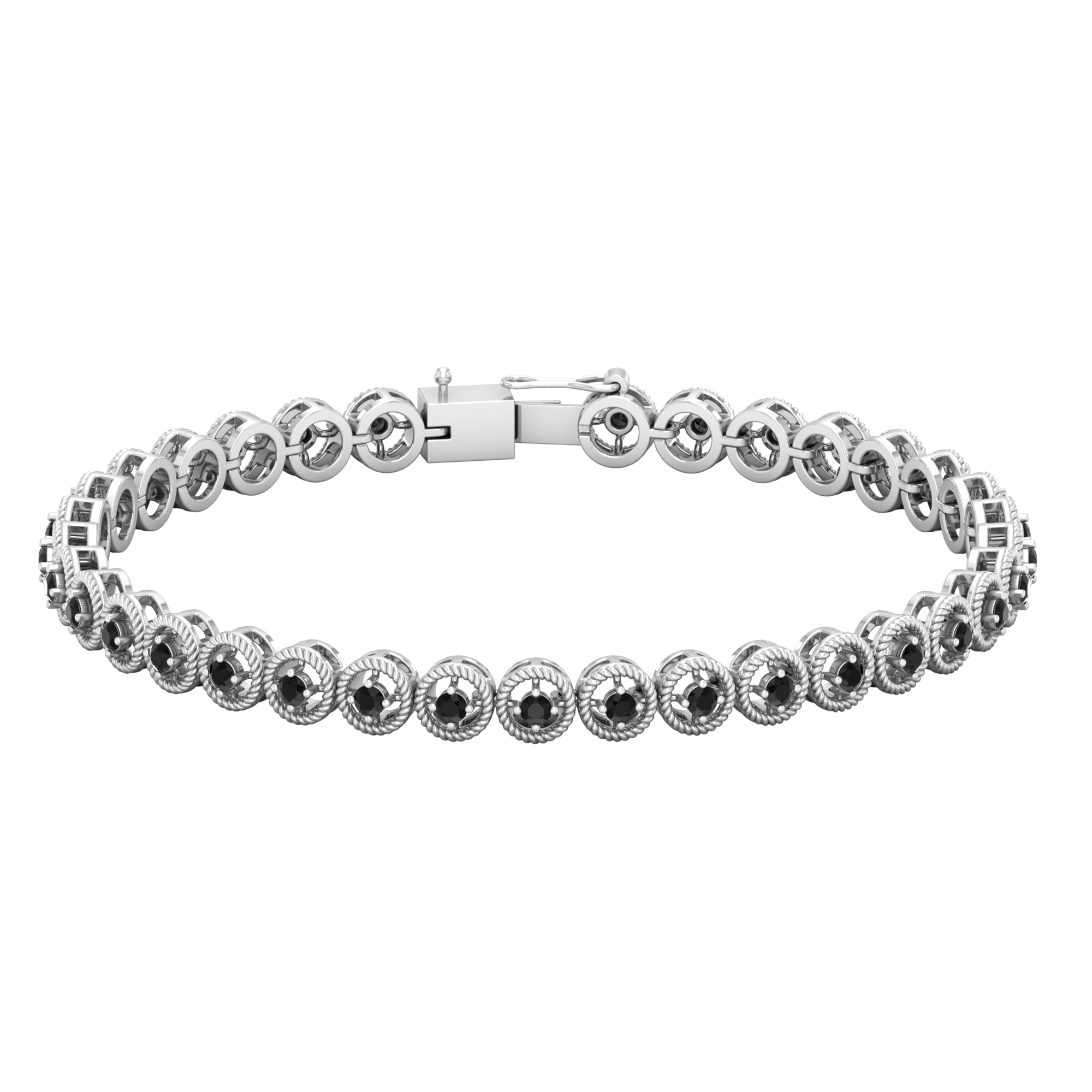 The mesmerizing Tennis Bracelet comes with 4 Prong Set Round Lab Created Black Diamonds inside Rope Frame on the Tennis Style. This Comfort Fit Bracelet is a perfect Birthday Gift for your spouse.