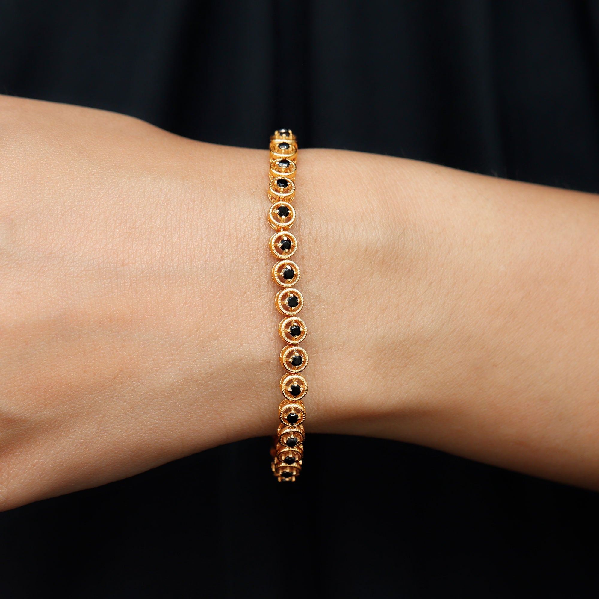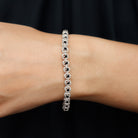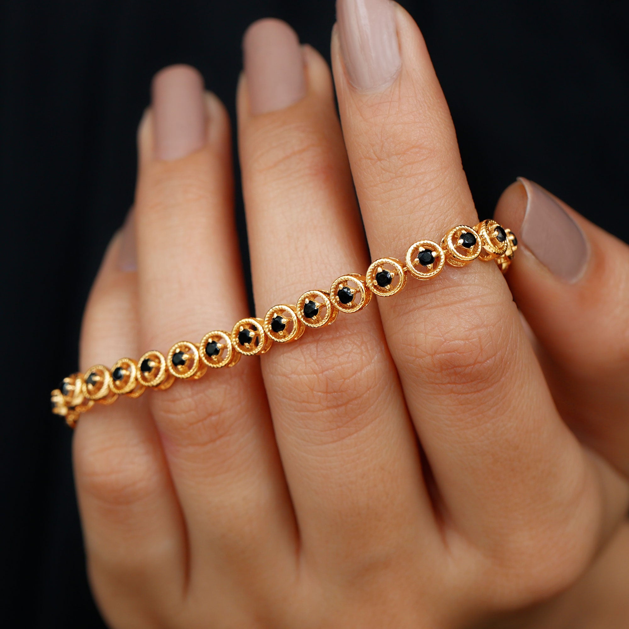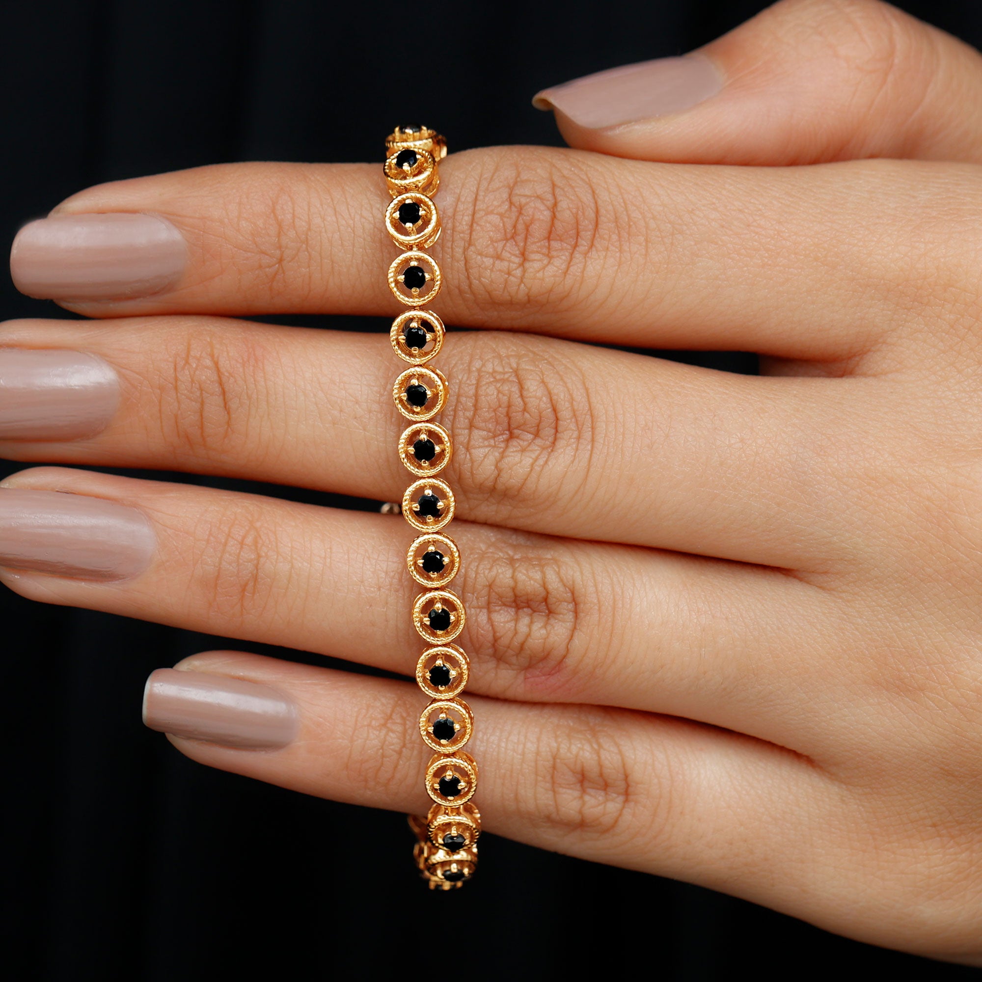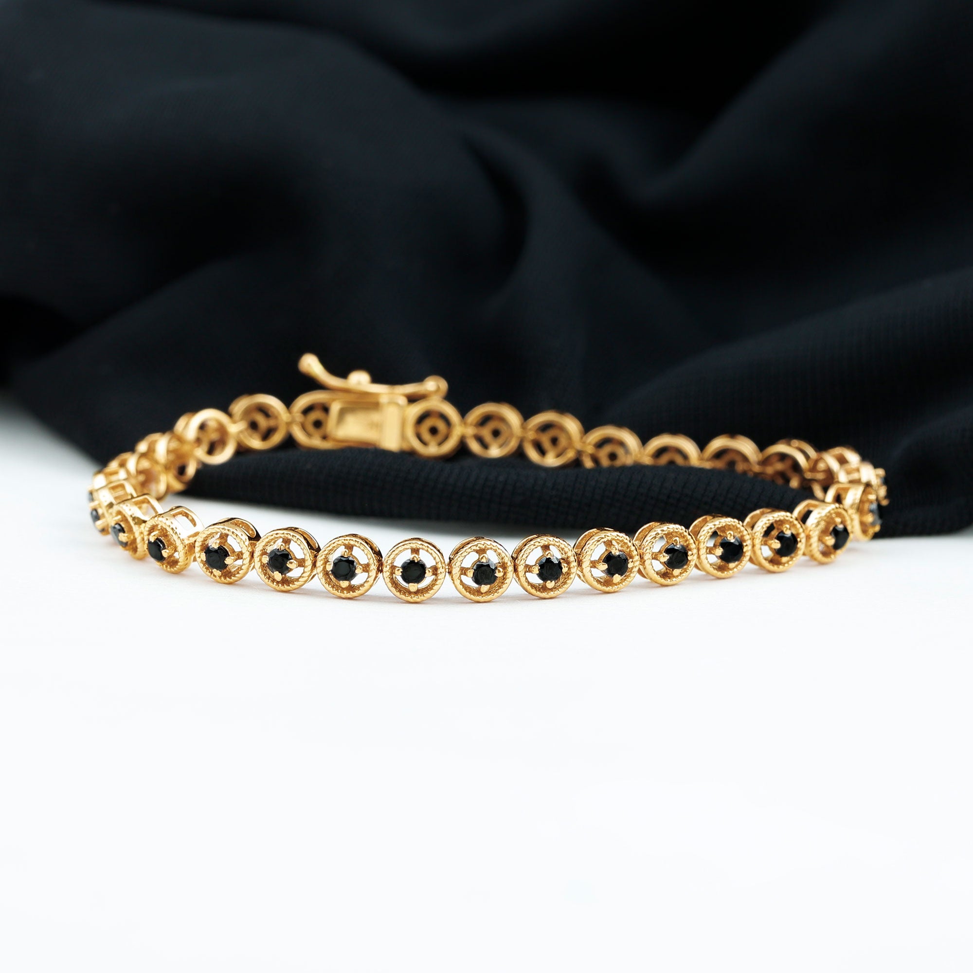 The mesmerizing Tennis Bracelet comes with 4 Prong Set Round Lab Created Black Diamonds inside Rope Frame on the Tennis Style. This Comfort Fit Bracelet is a perfect Birthday Gift for your spouse.