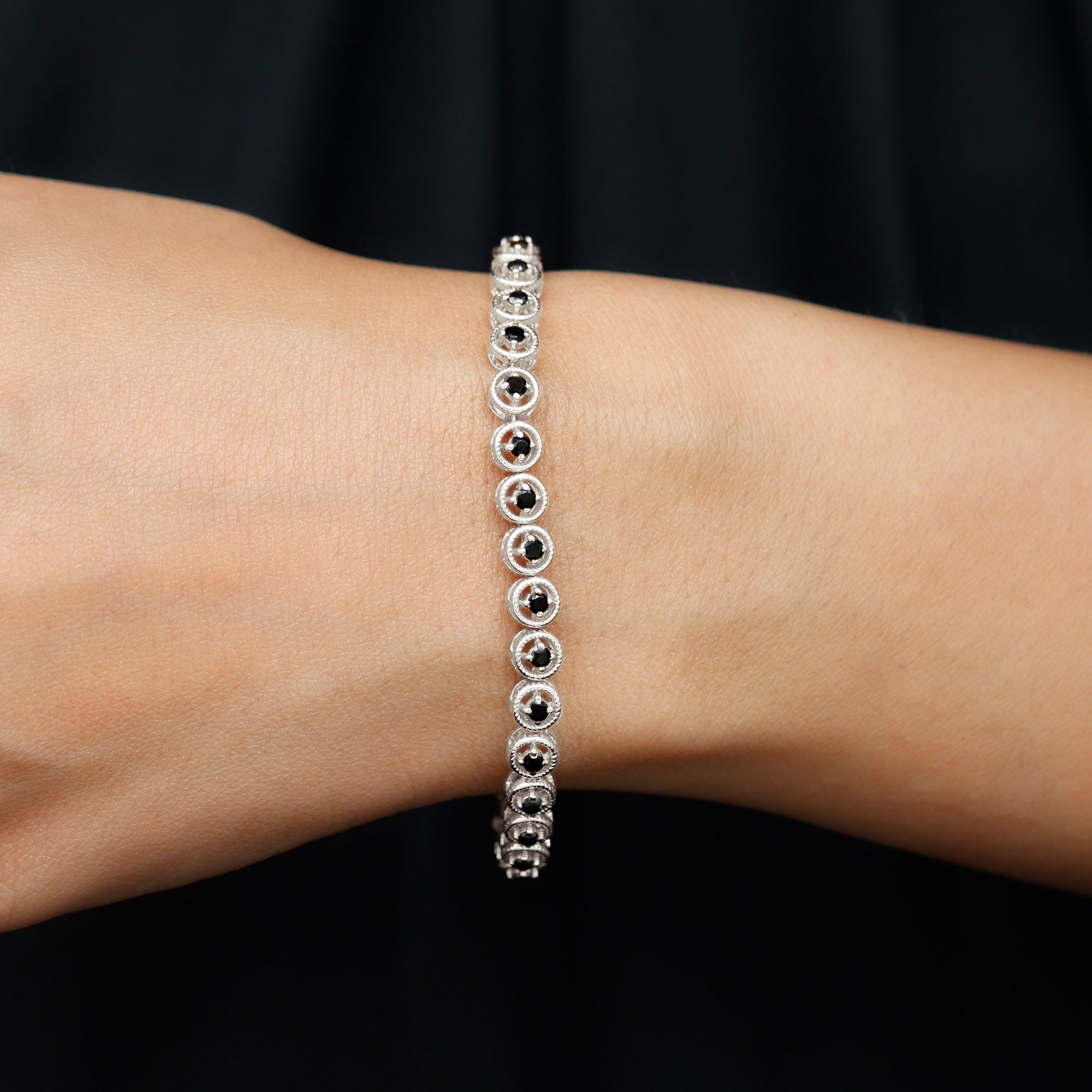 Lab Grown Black Diamond Tennis Bracelet with Rope Frame