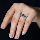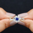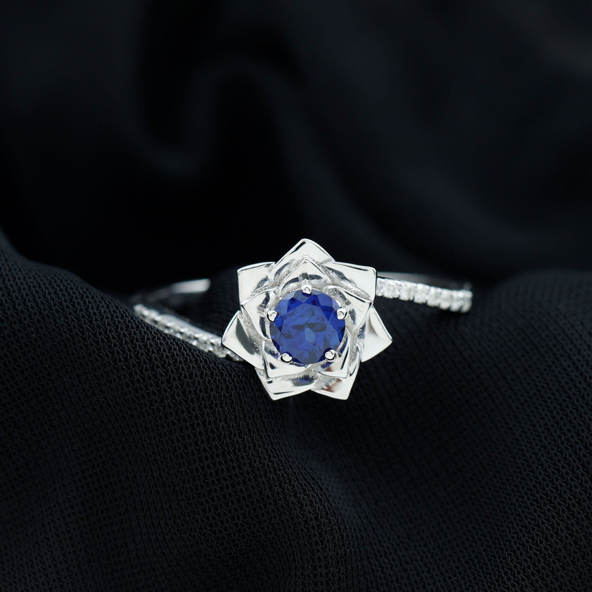 Illuminate your special day with the brilliance of this Flower Engagement Ring. A Round Shape Lab Created Blue Sapphire takes center stage, surrounded by dazzling Diamond gemstones. The ring features a graceful Bypass Shank design, adding a unique and enchanting touch. Let this Created Blue Sapphire Ring be a symbol of your everlasting love and a beautiful reminder of your cherished moments together.