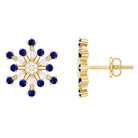 Lab Grown Blue Sapphire and Diamond Snowflake Stud Earrings