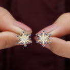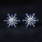 Lab Grown Blue Sapphire and Diamond Snowflake Stud Earrings