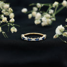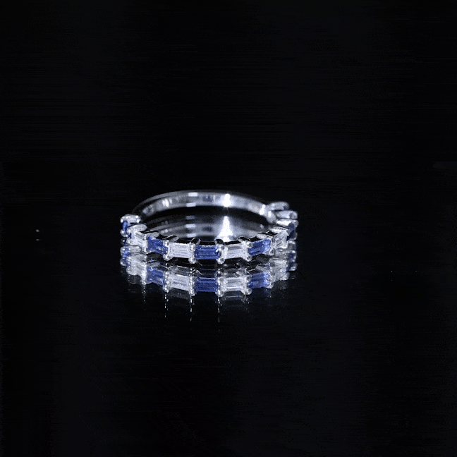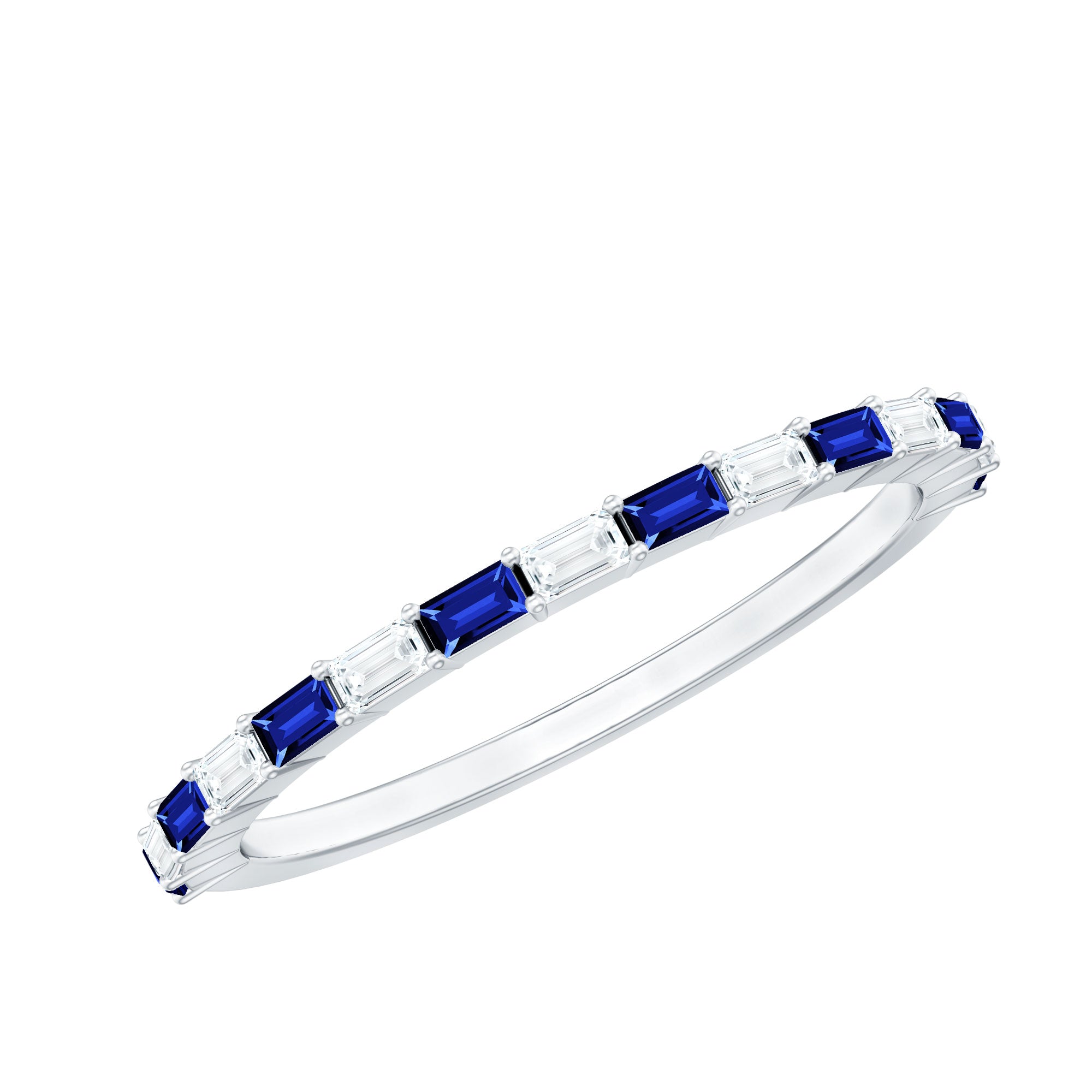 Lab Grown Blue Sapphire Baguette Eternity Ring with Moissanite
