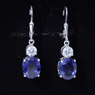 Explore the stunning blend of sophistication and modern design with our Lab Created Sapphire Hoop Earrings, embodying the true essence of luxury. Featuring AAAA Quality Lab Blue Sapphire and D-VS1 Quality Moissanite, these earrings showcase exceptional brilliance and a captivating interplay of light. Made with 14K White Gold Plated Silver, these Dangle Drop Earrings are adorned with an 8X10 MM oval shaped lab created blue sapphire, complemented by the dazzling sparkle of round brilliant cut moissanite. The enchanting shimmer of these Silver Sapphire Earrings is bound to leave a lasting impression. Enjoy the fashionable style and secure fit of the leverback design, which is sure to attract attention and ignite conversations wherever you wear them.
