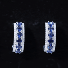 Lab Grown Blue Sapphire Half Hoop Earrings with Moissanite