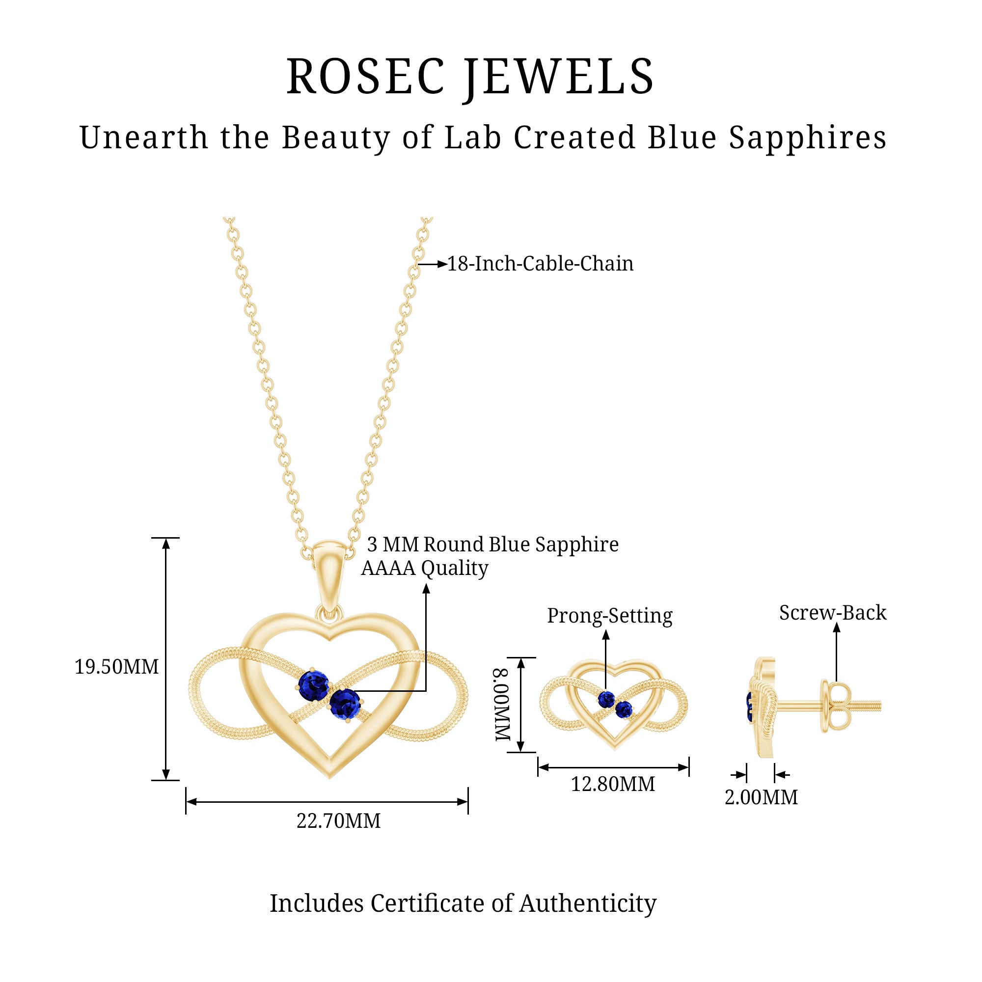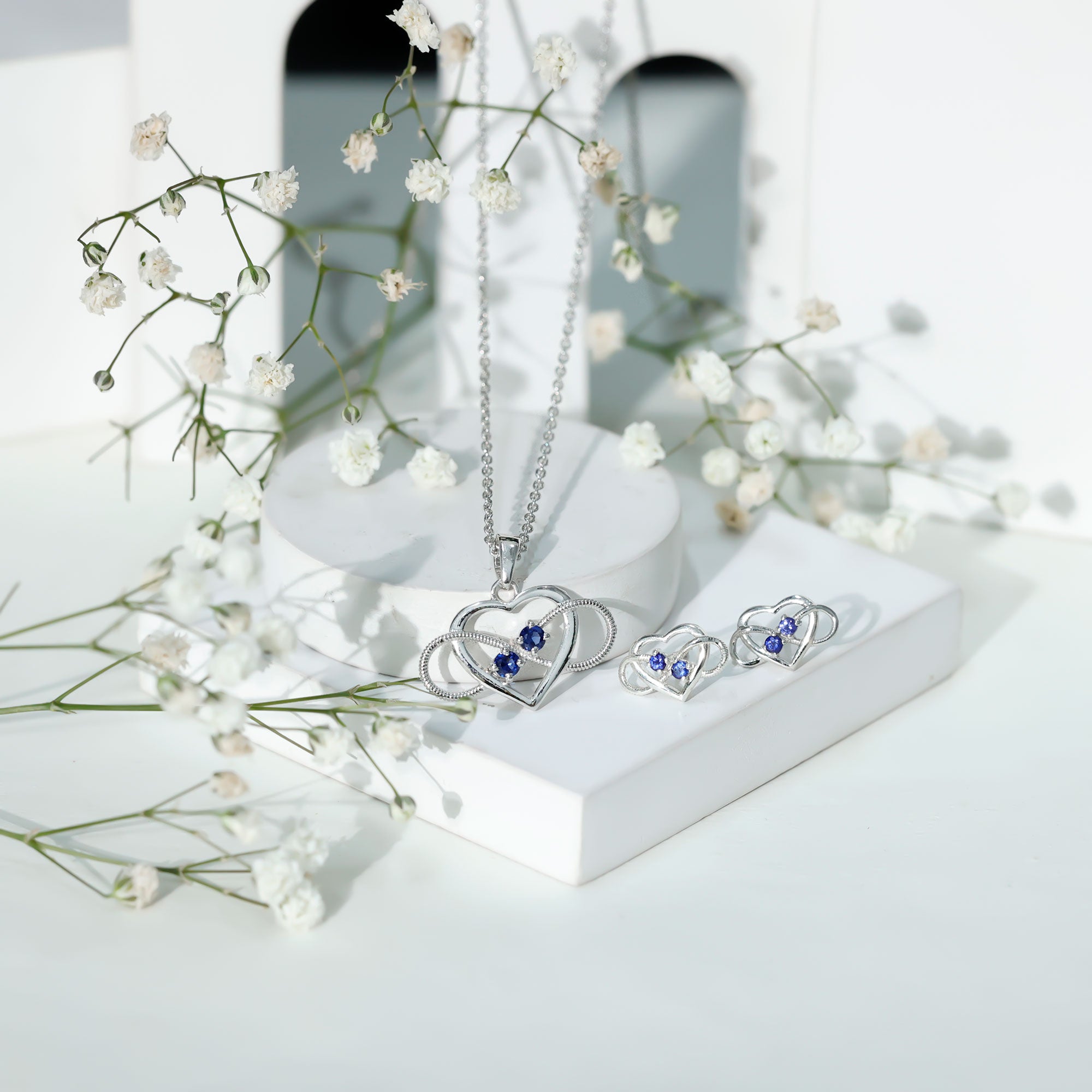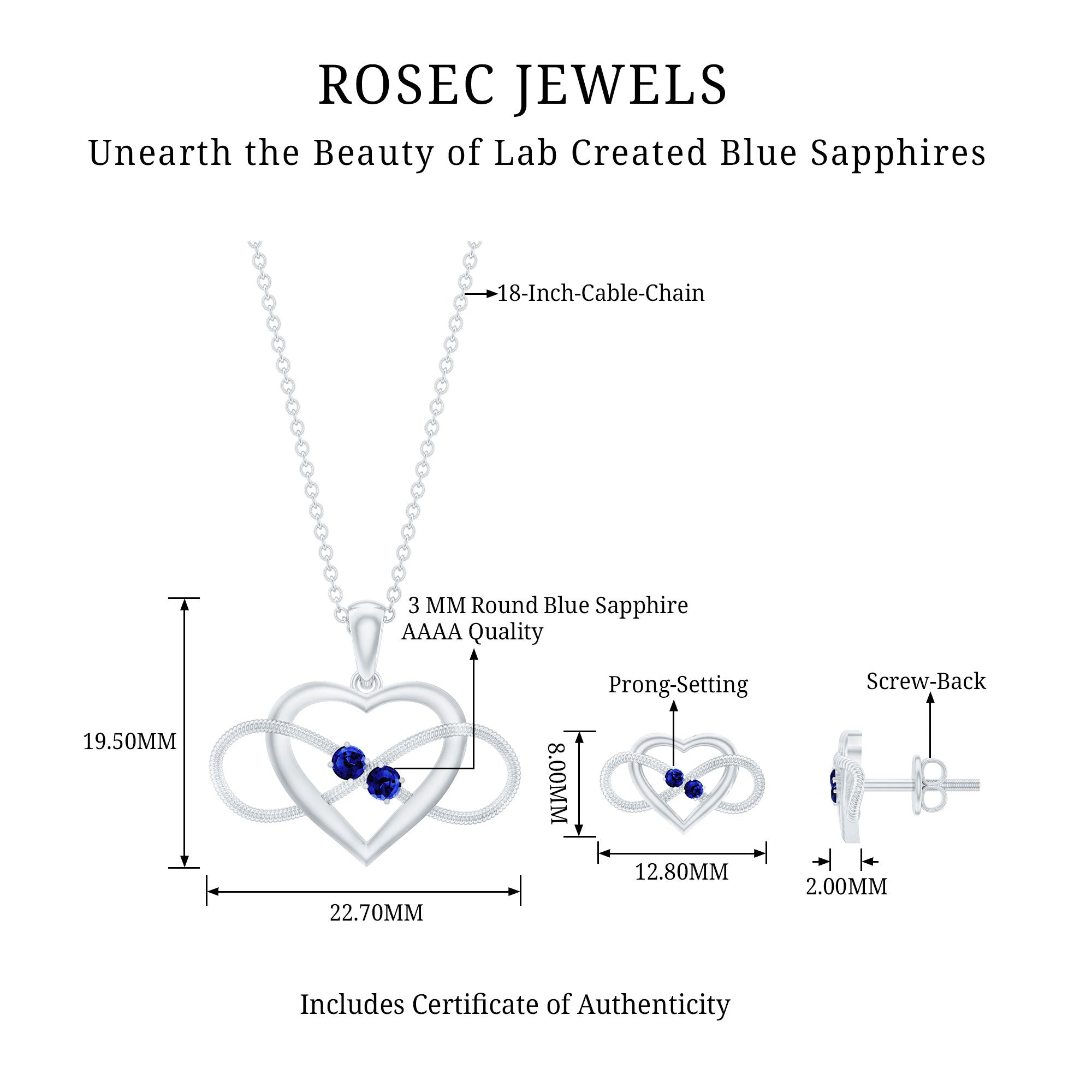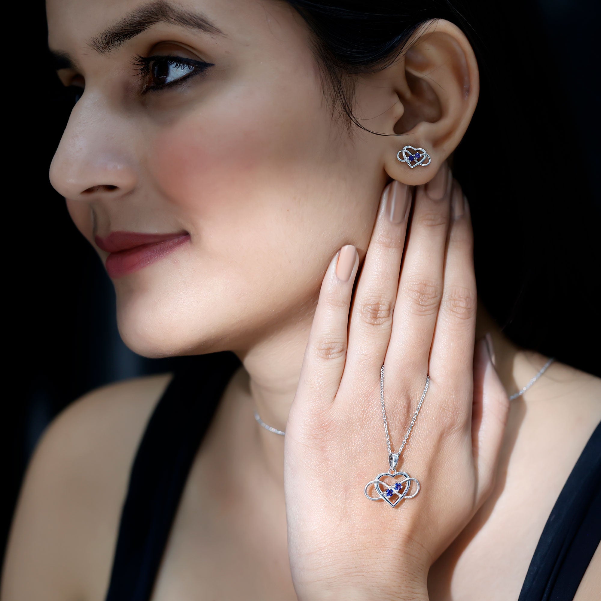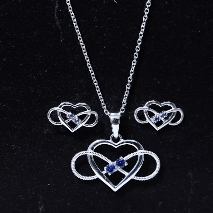 Lab Grown Blue Sapphire Infinity Heart Jewelry Set