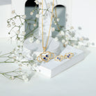 The Lab Grown Blue Sapphire Infinity Heart Jewelry Set is a symbol of everlasting love and devotion. The set features a heart-shaped blue sapphire pendant in a twisted rope structure and matching stud earrings. The infinity symbol is intertwined over the heart with a small blue sapphire, creating a truly unique and eye-catching design. This infinity symbol represents endless love and commitment, making this set the perfect gift for a special someone.