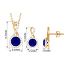 Certified Lab Grown Blue Sapphire Bridal Jewelry Set with Moissanite