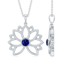 Lab Grown Blue Sapphire Lotus Flower Necklace