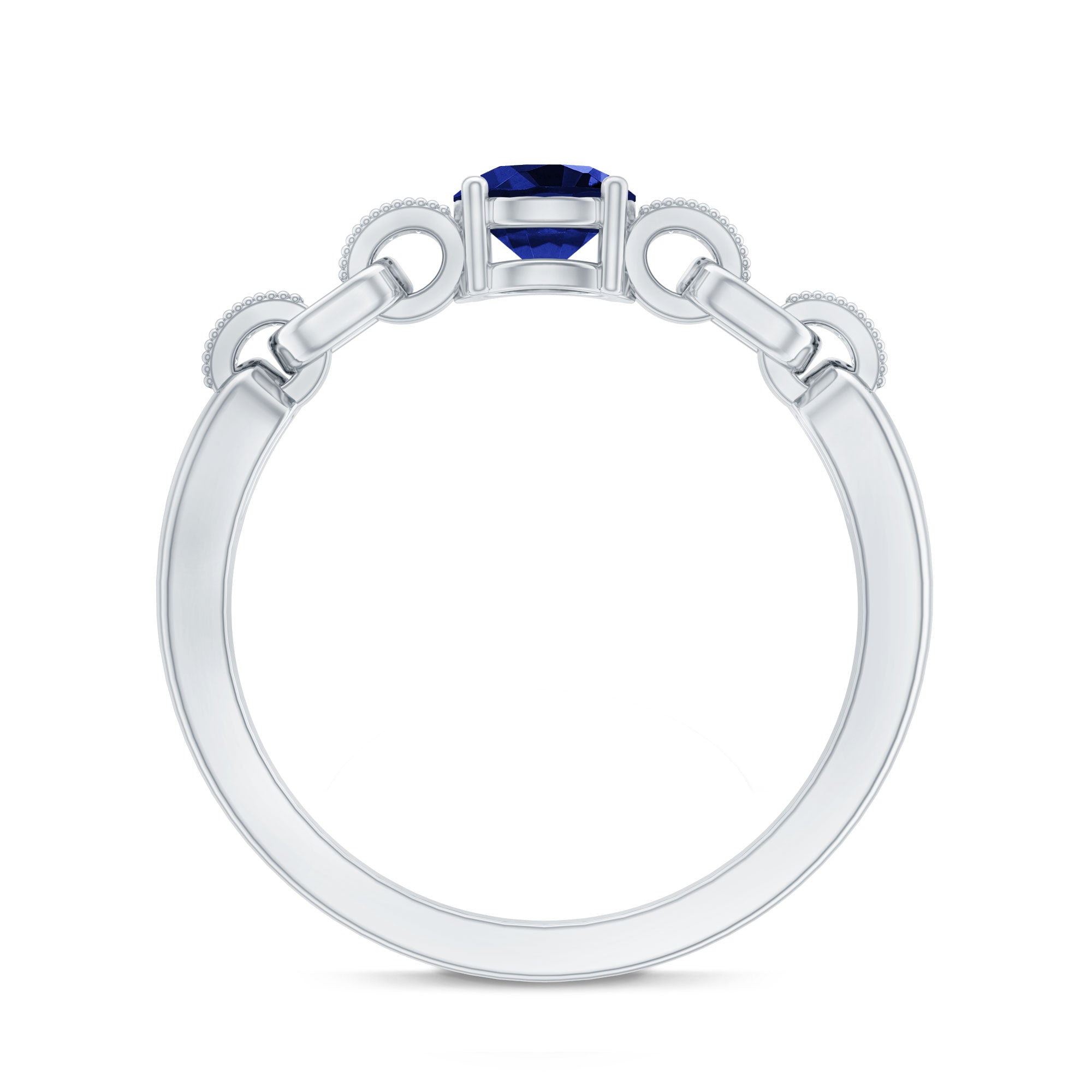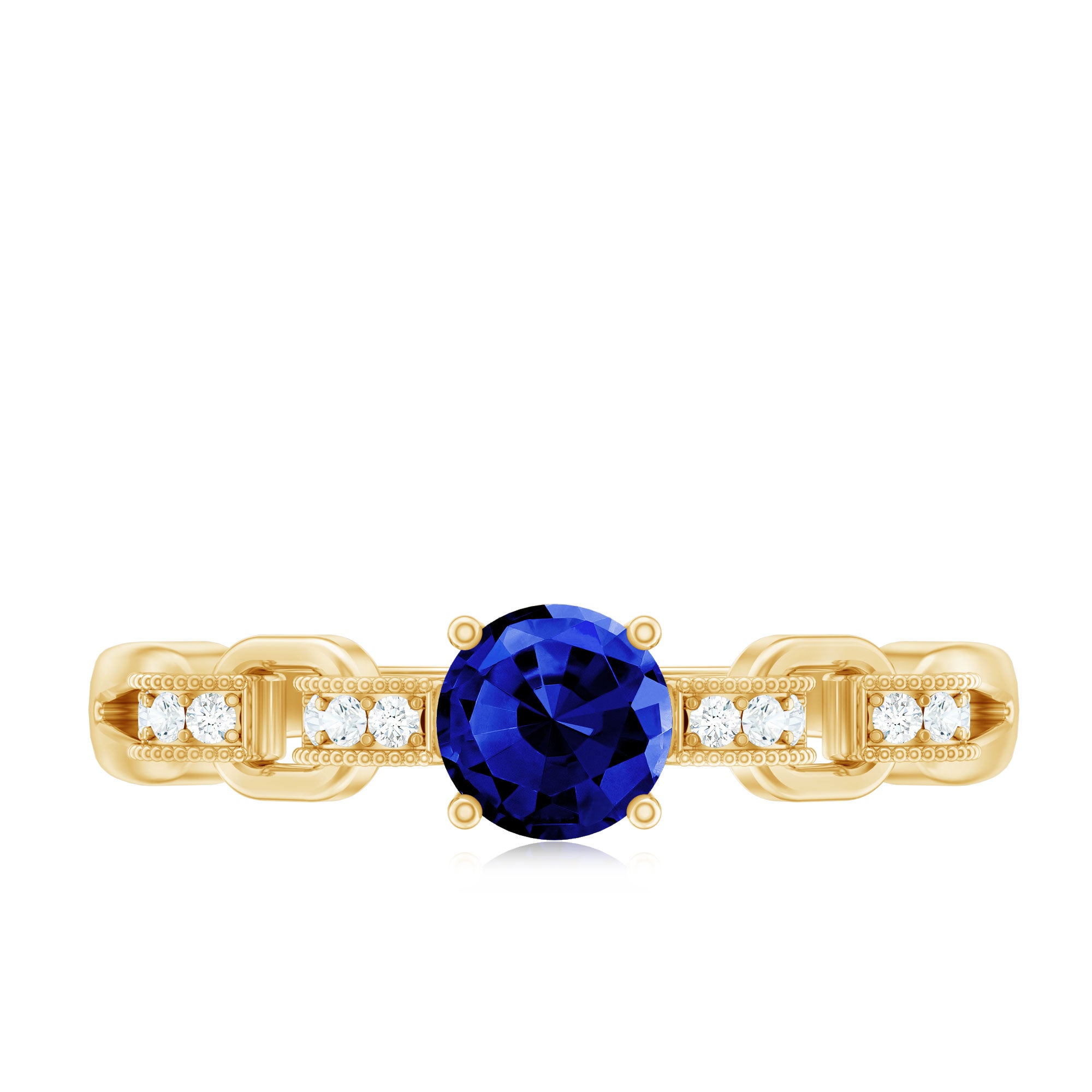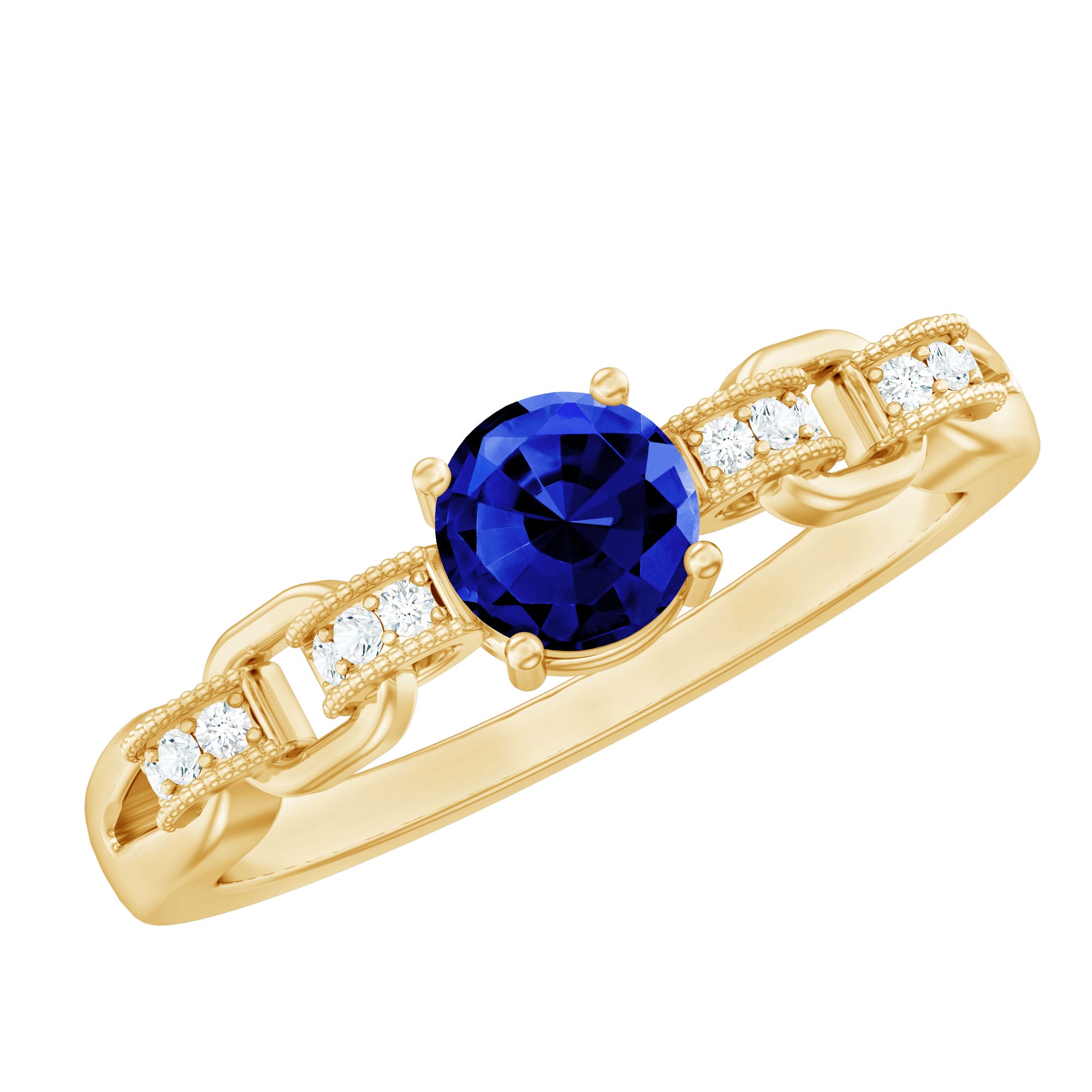 Elegance meets simplicity in our Minimal Promise Ring, featuring a 5 mm Round Shape Lab Grown Blue Sapphire in a secure prong setting. The chain design band, adorned with Round Shaped Lab Grown Diamonds, adds a touch of brilliance with the Aaaa Quality Sapphire. Meticulously crafted and certified, this Classic Ring stands as a timeless symbol of commitment, marrying sophistication with a modern aesthetic. Let this Sapphire Diamond Ring narrate your promise in a classically refined way.