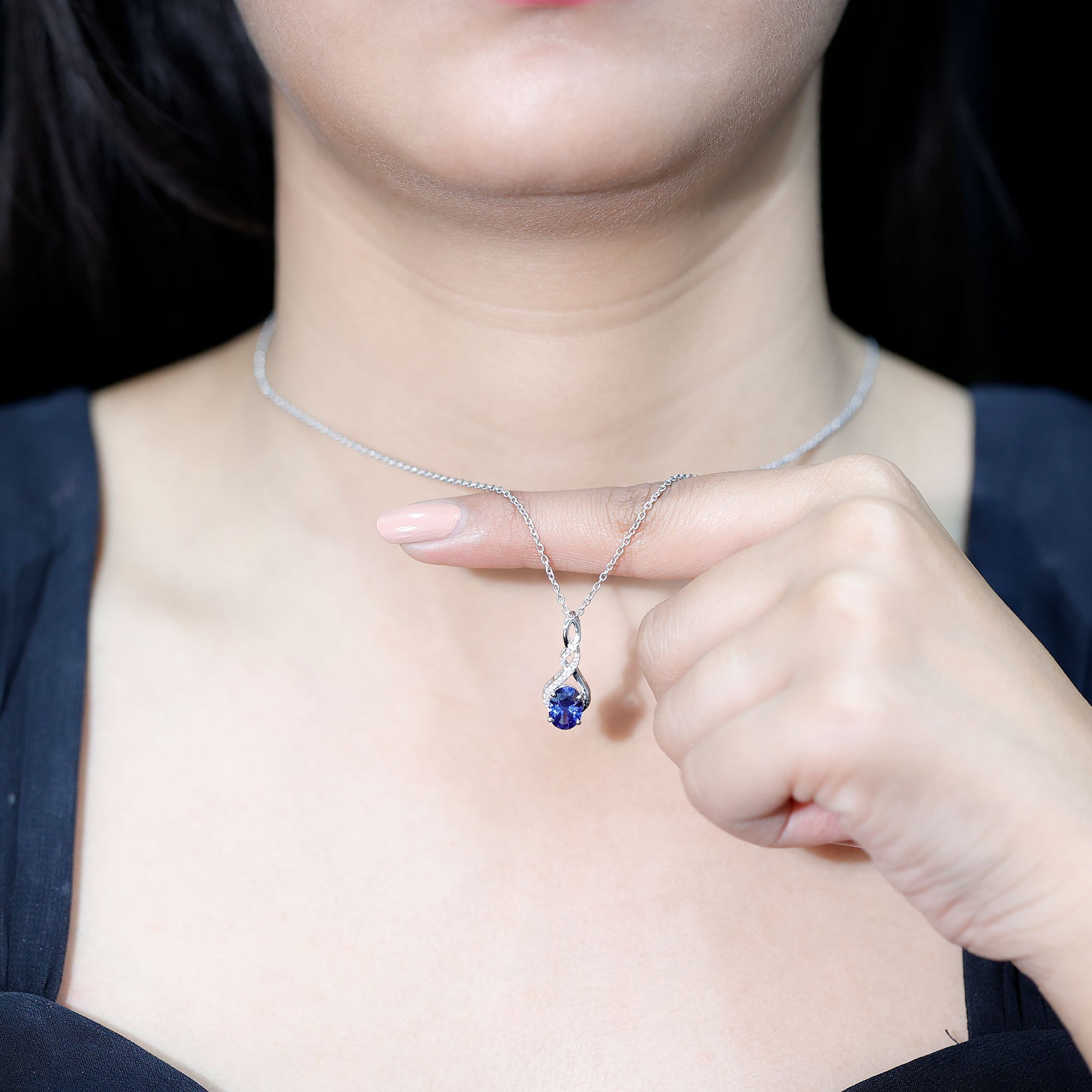 Lab Grown Blue Sapphire Moissanite Knot Pendant Necklace With Silver Chain