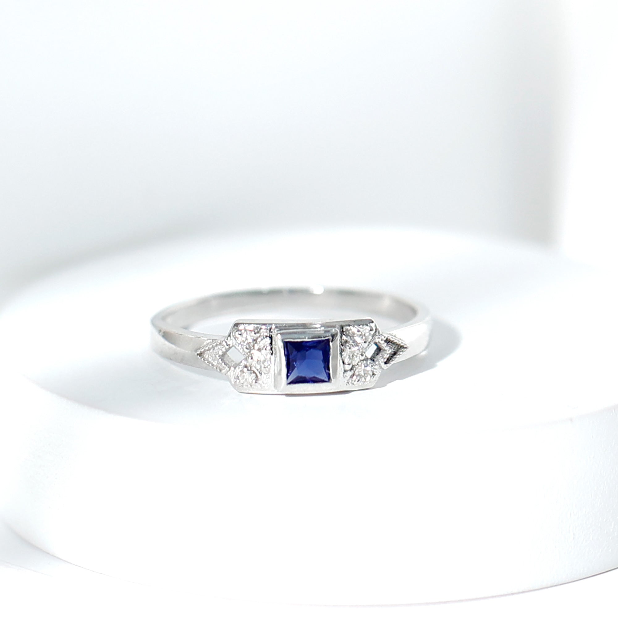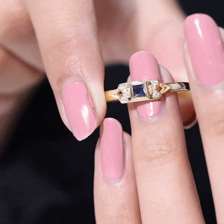 Lab Grown Blue Sapphire Promise Ring with Diamond