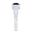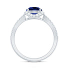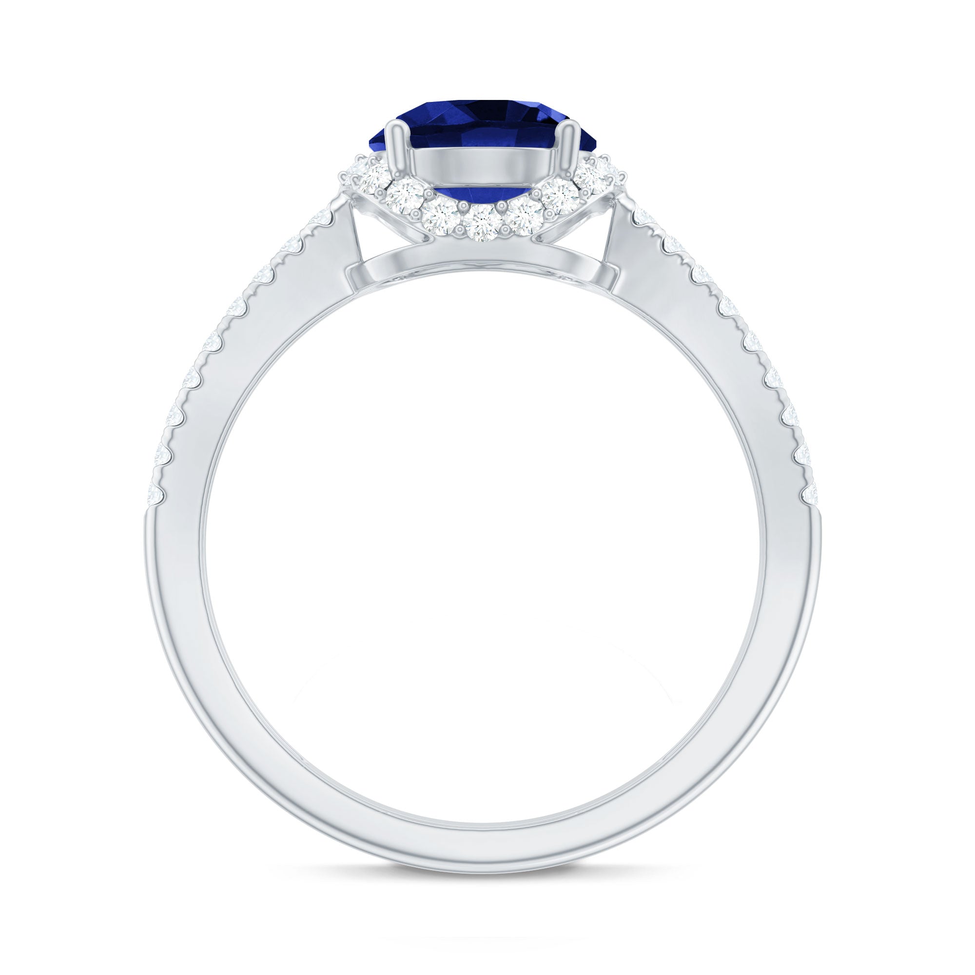 Lab Grown Blue Sapphire Round Engagement Ring with Diamond Halo